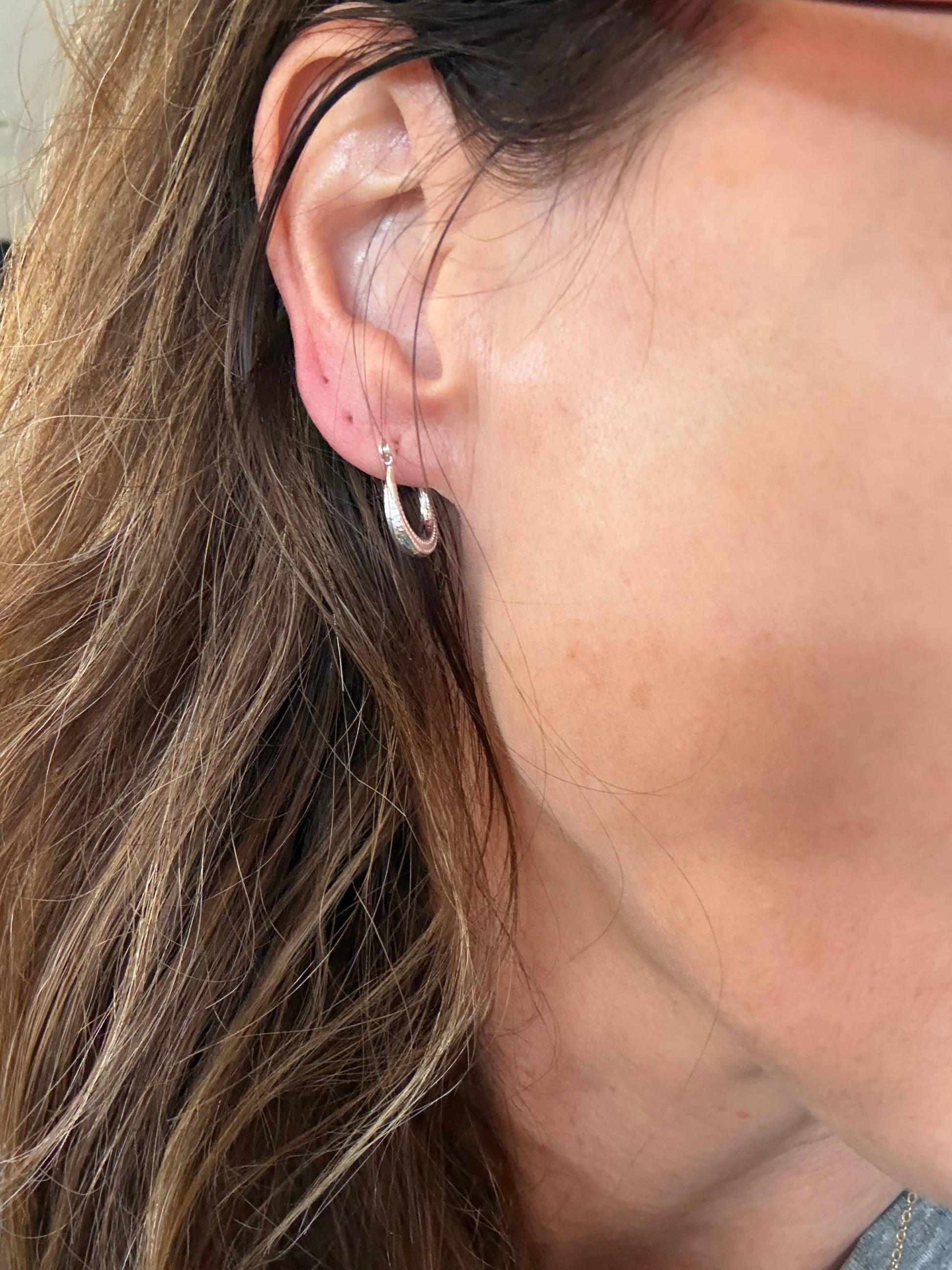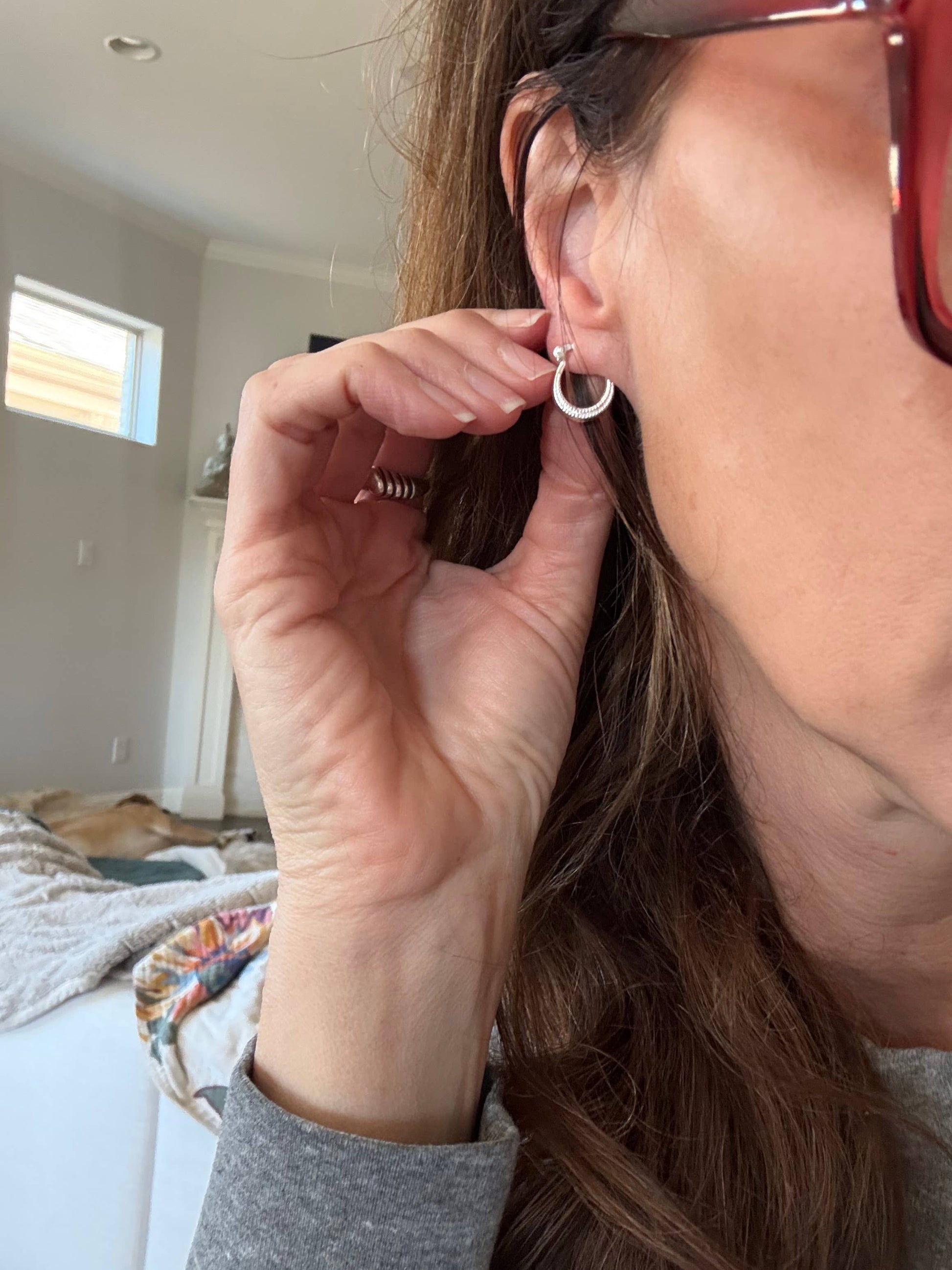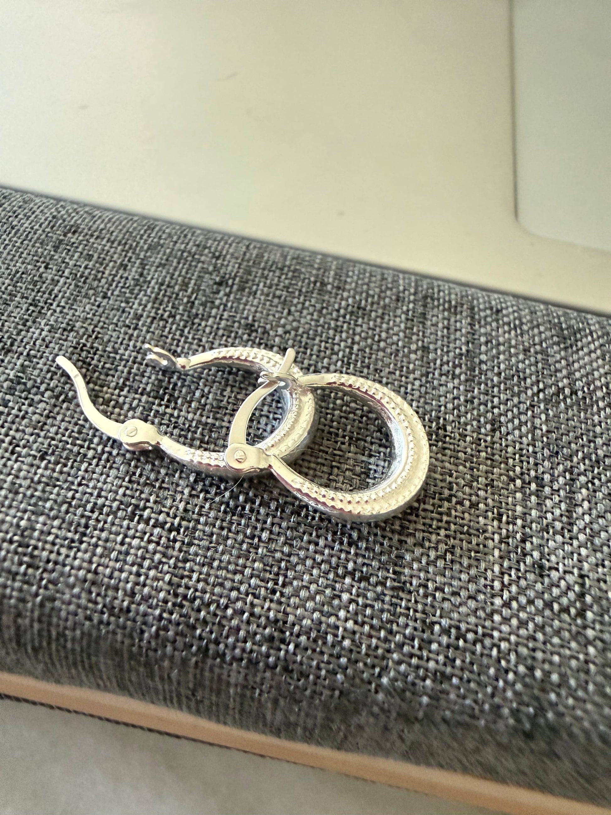 Don't let the small size fool you — these little beauties make a big impression. Our Baby Milgrain Hoops feature a delicate beaded edge detail that catches the light with every turn. Crafted in .925 sterling silver with a secure latch-back closure, they're the perfect everyday hoop you'll reach for without thinking. Lightweight, polished, and endlessly wearable.