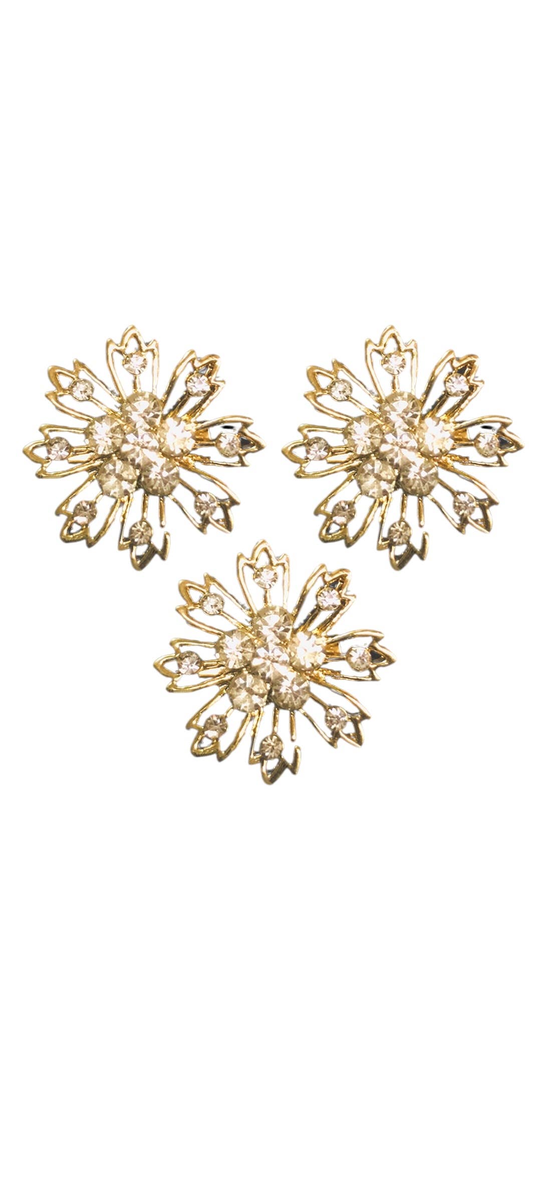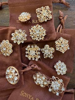 Elevate any look with our Brooch Collection—a curated assortment of radiant, vintage-inspired brooches designed to sparkle from every angle. Featuring intricate floral silhouettes, teardrop crystals, and high-shine finishes in silver, gold, and blush tones, each piece is made to stand out. 1" approximate