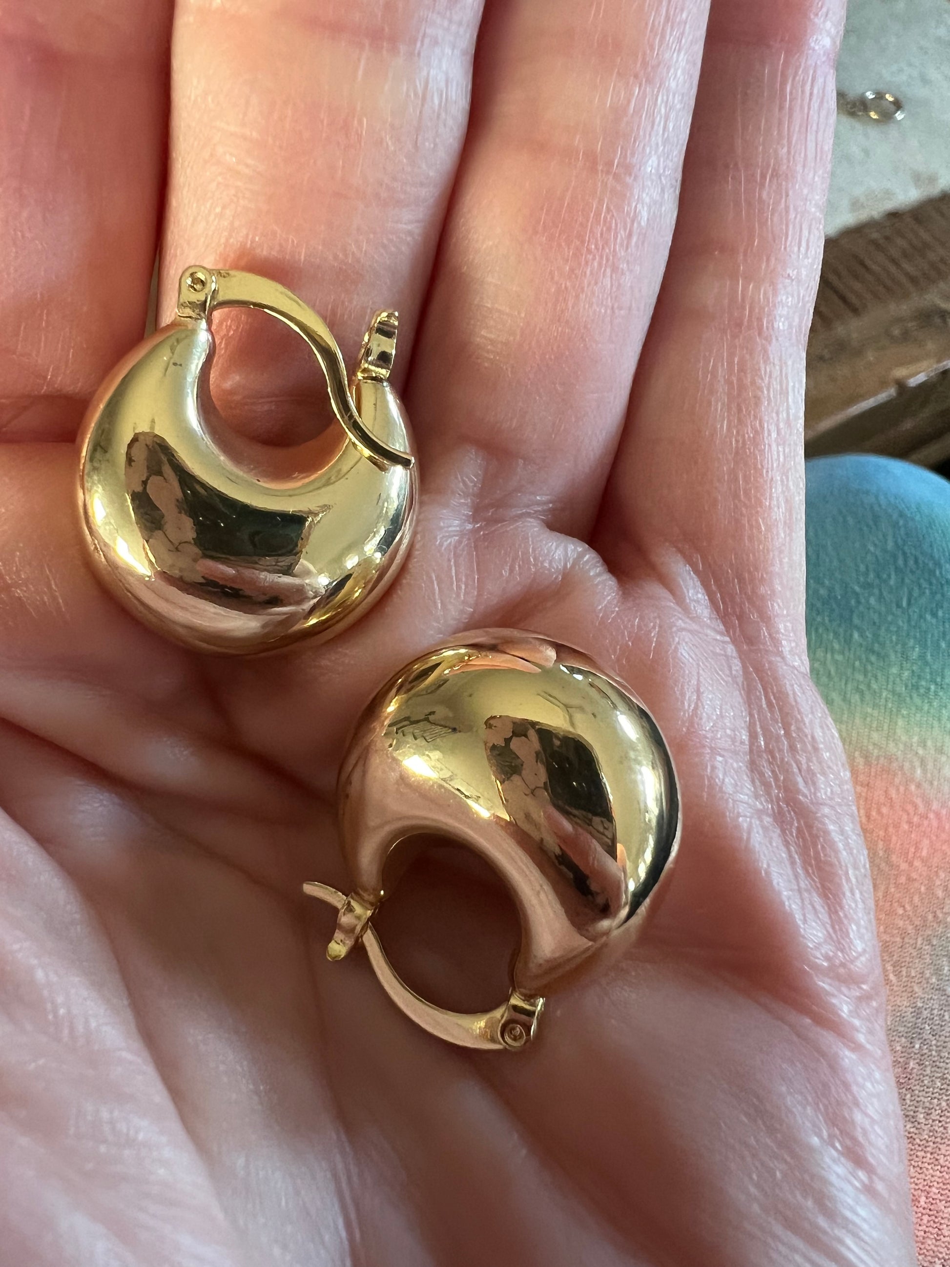 Gold plated brass, latch closure the bubble hug earrings are so cute trendy and classic for everyday wear.
