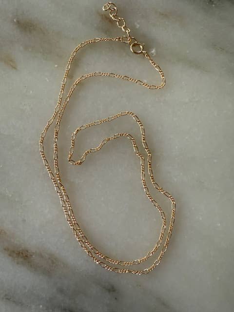Gorgeous delicate Figaro chain in 14kt GF. Any length available. GF spring ring clasp. Extender chain 1.5”