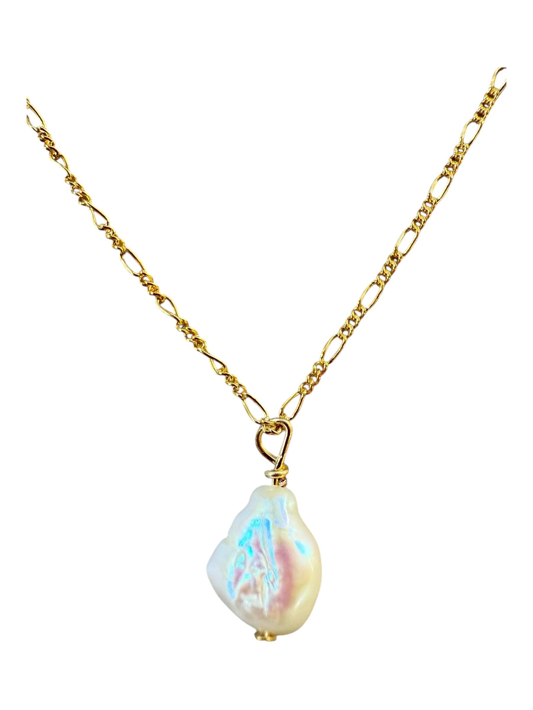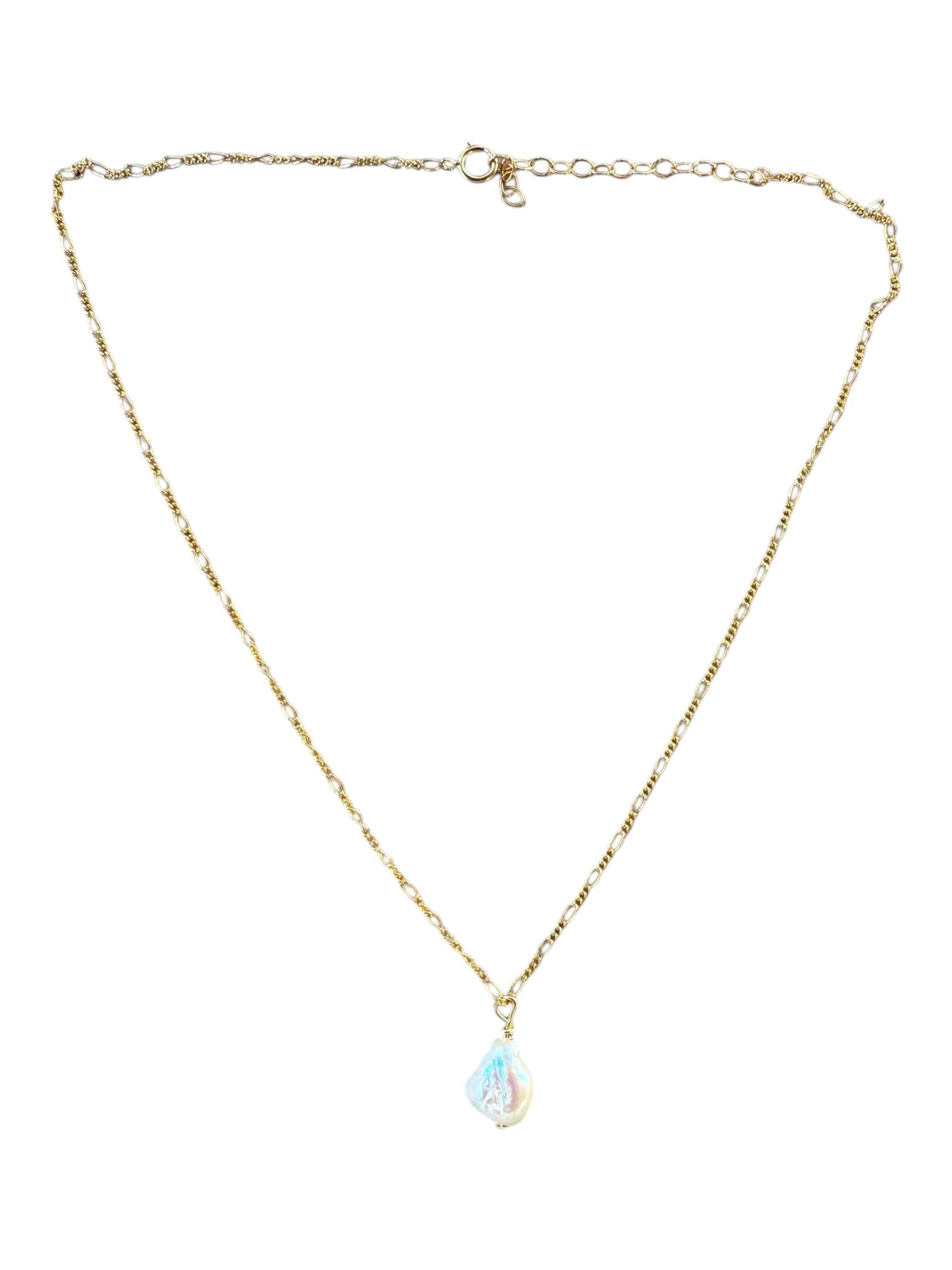 Lovely choker necklace, built for layering,, delicate and girly,, freshwater pearl and 14kt GF figaro chain with extender.
