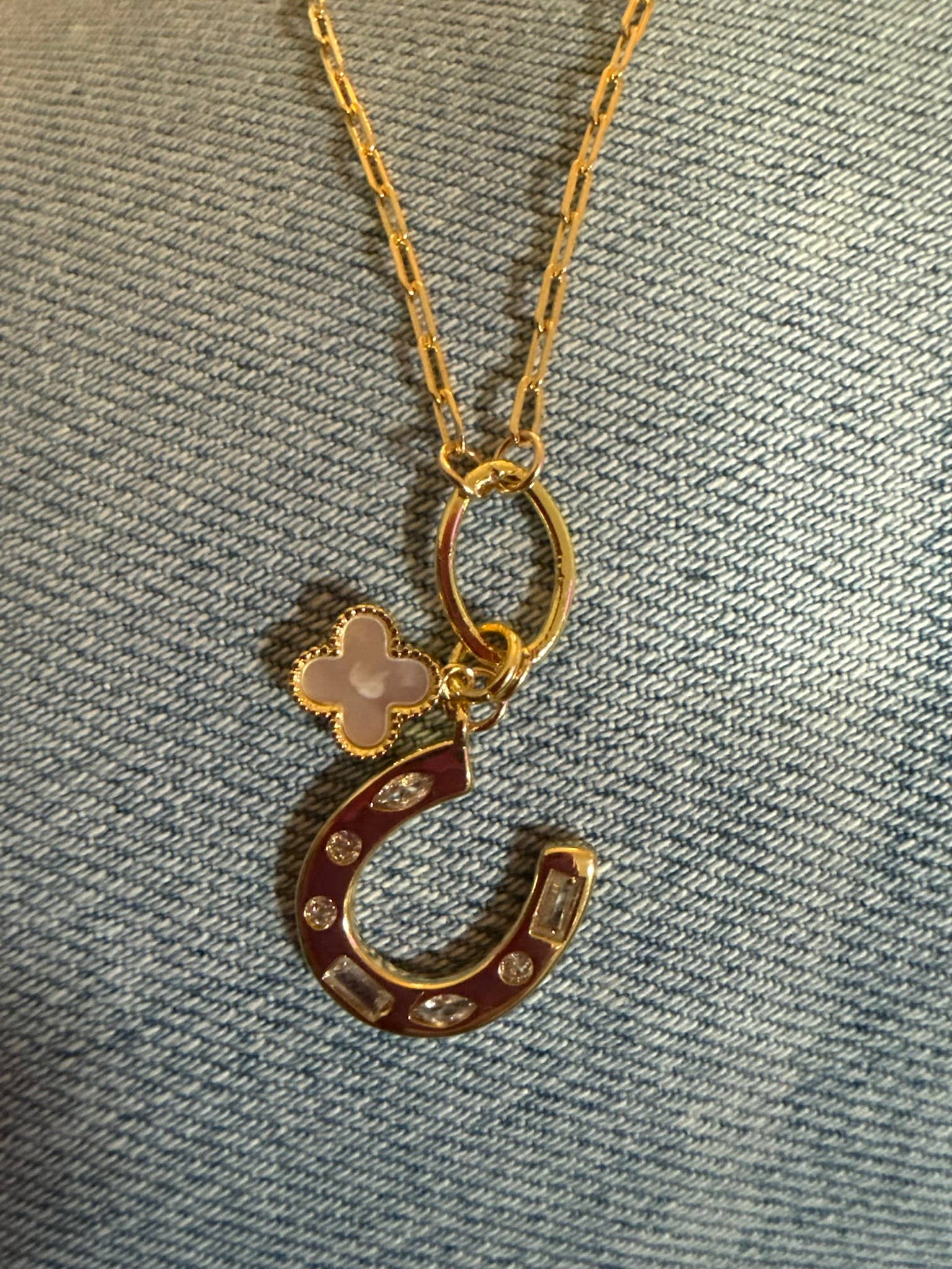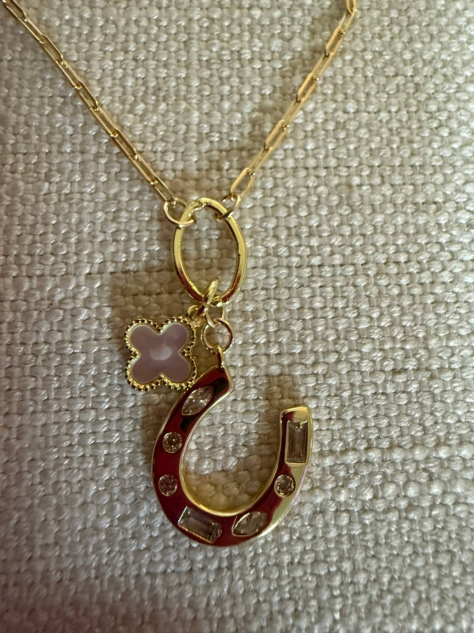 Good Luck Chuck,,, large horseshoe + mother of pearl pendant.