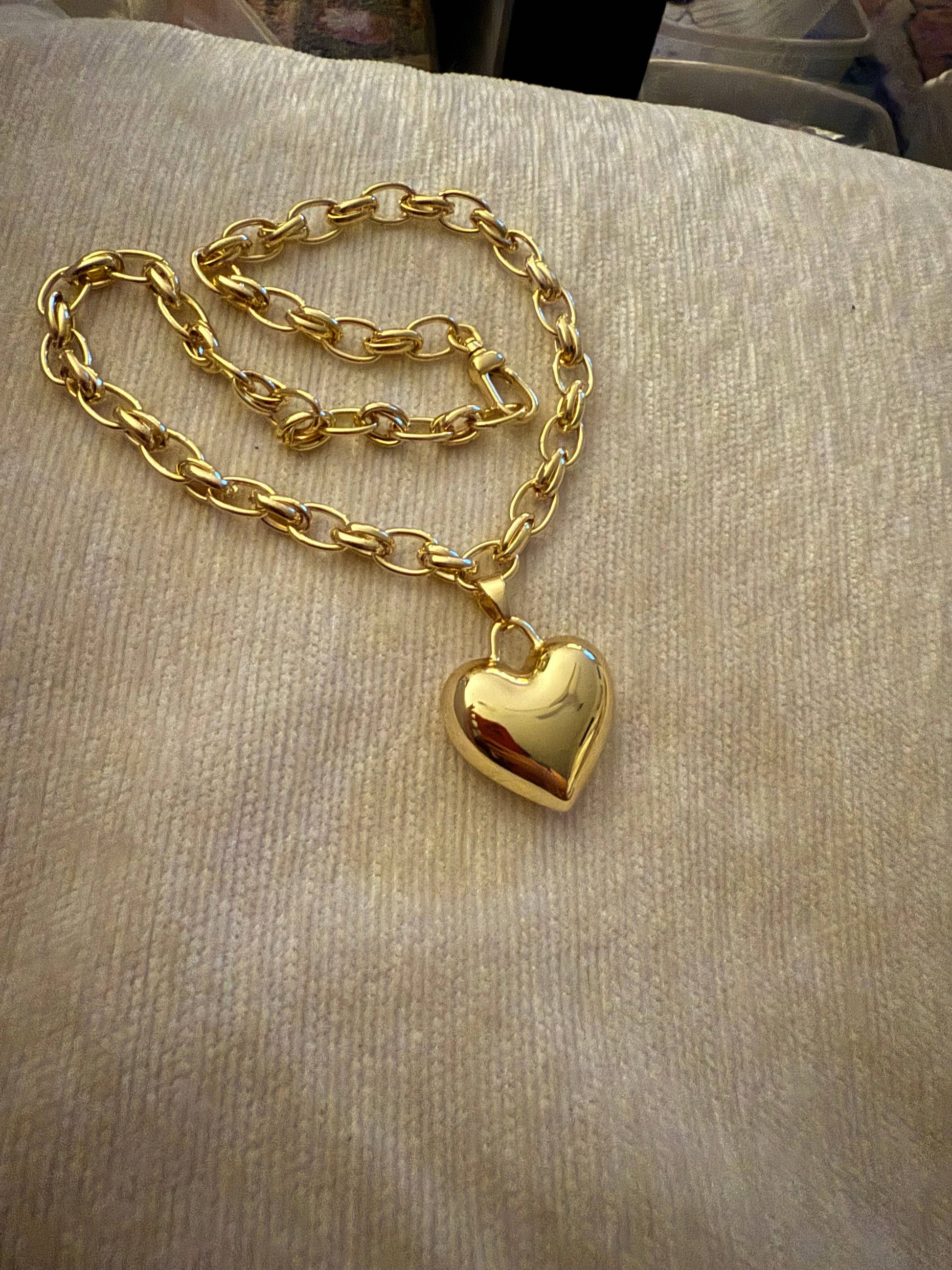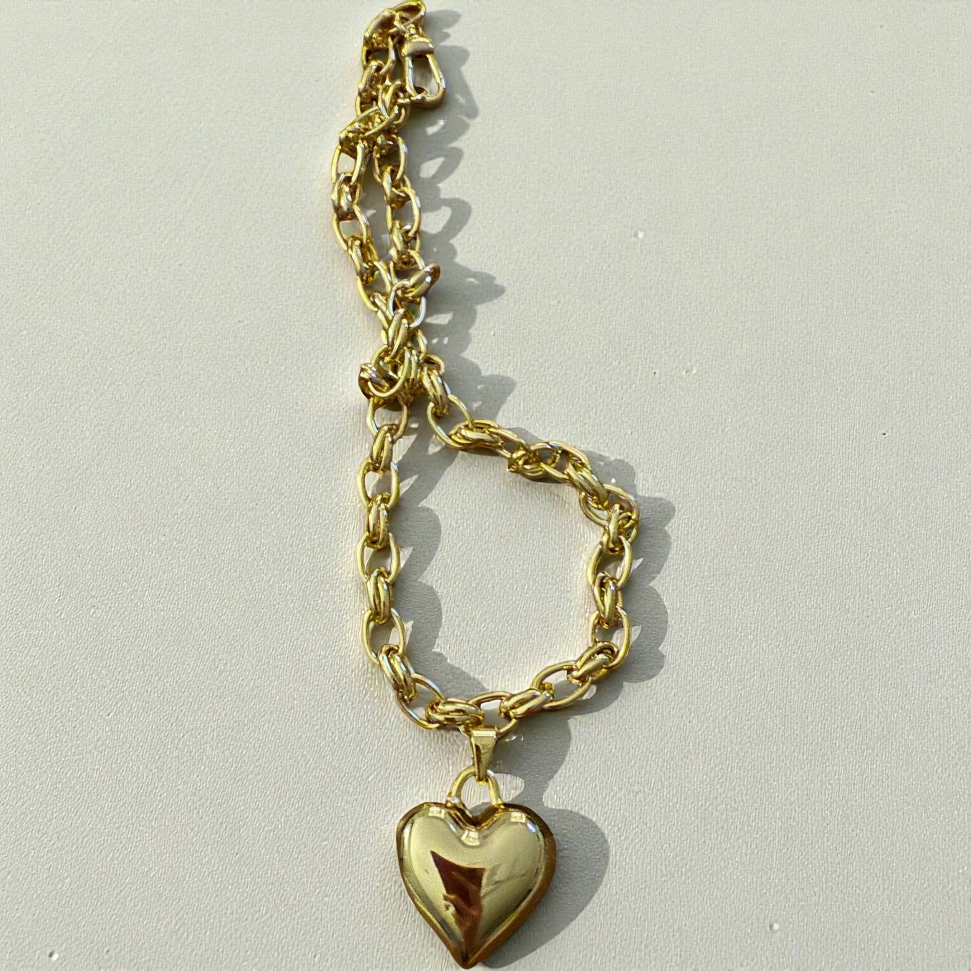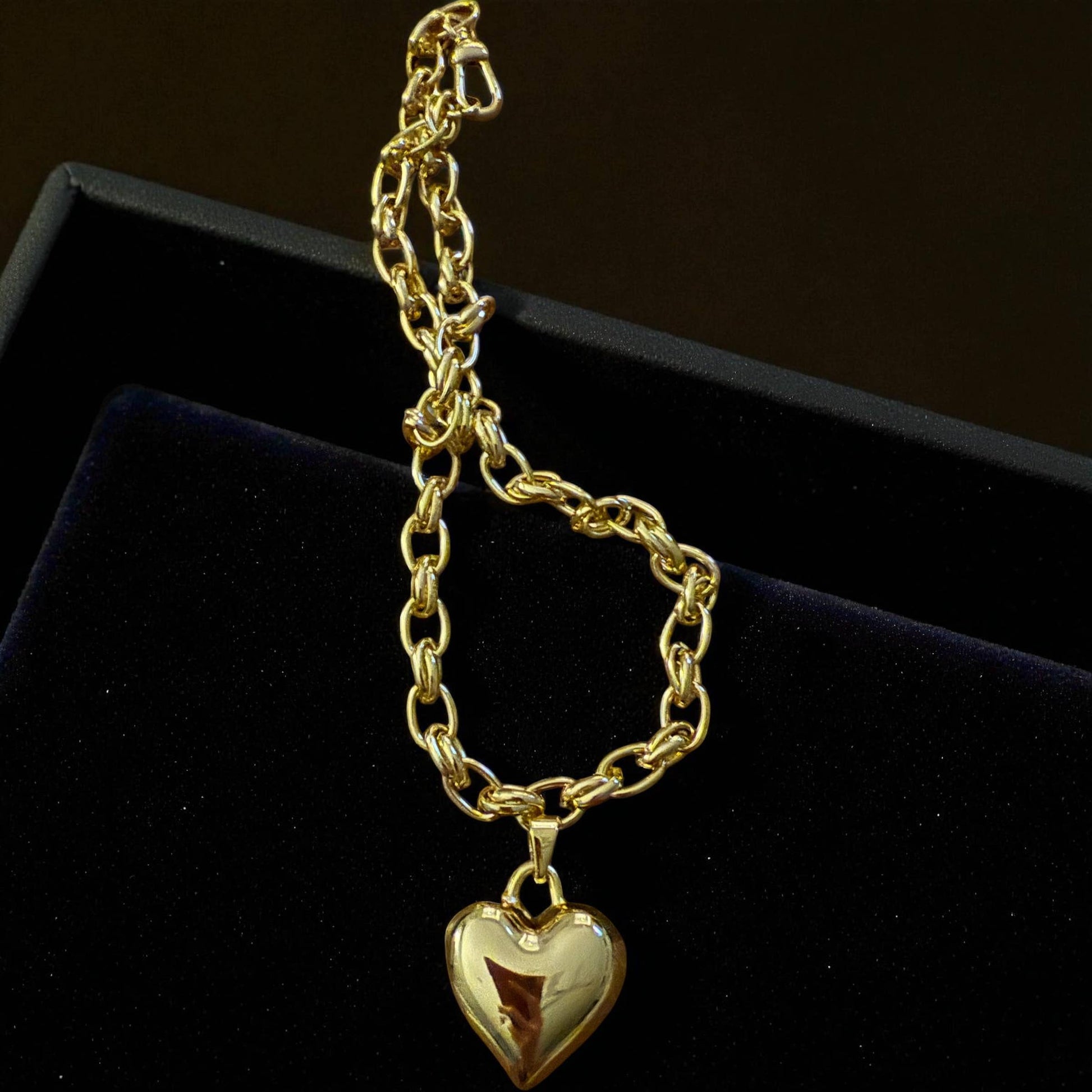 This statement heart pendant drops from a chunky link chain that catches the light (and compliments) from every angle. Plated for lasting shine, this 16” adjustable stunner adds instant attitude to any outfit—whether you’re layering it up or letting it steal the show solo.