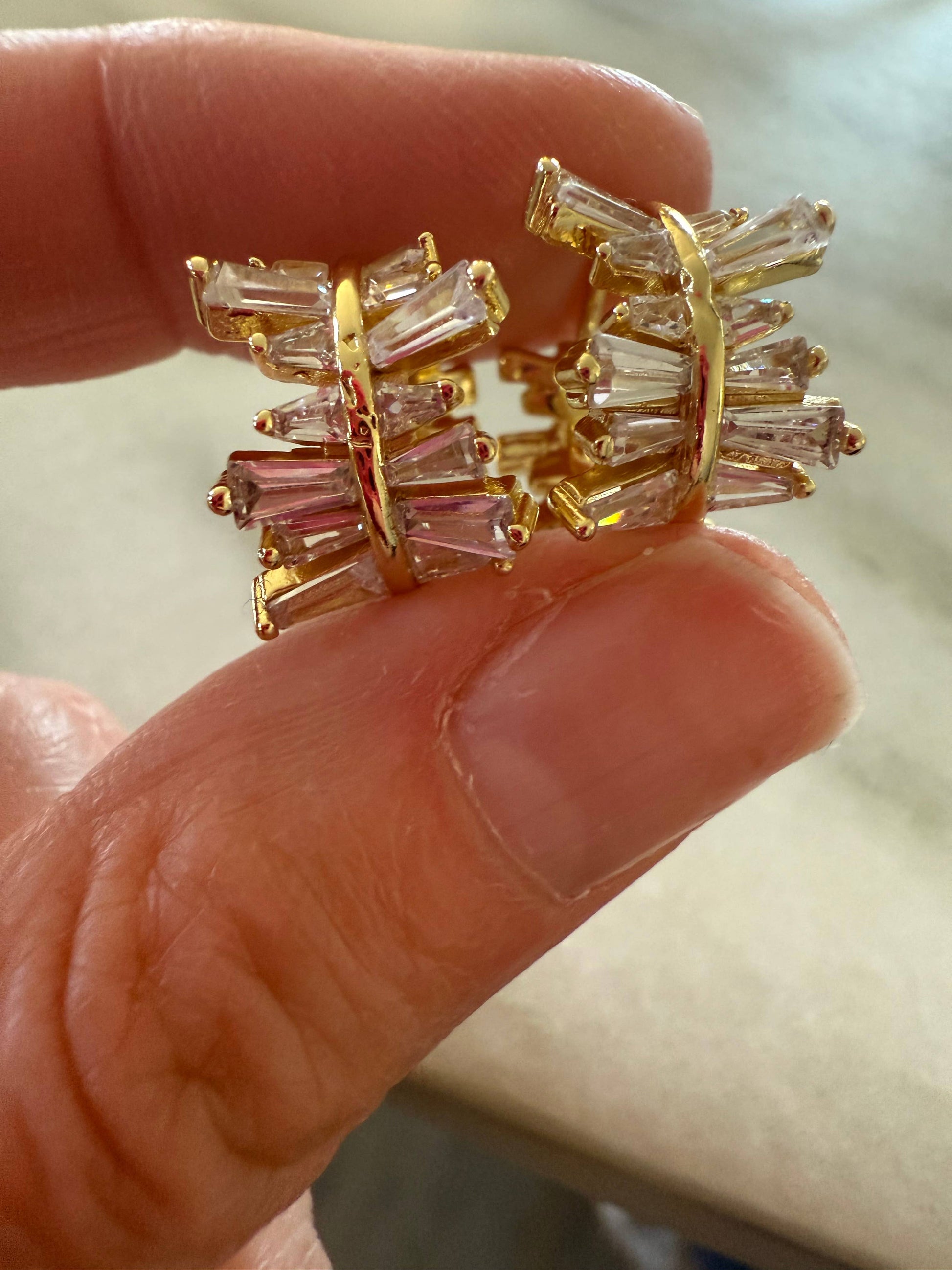 I love these stalagmite style cz's jetting out of the hoop, these are so cool and unique, I just adore them! Gold plated and cz.