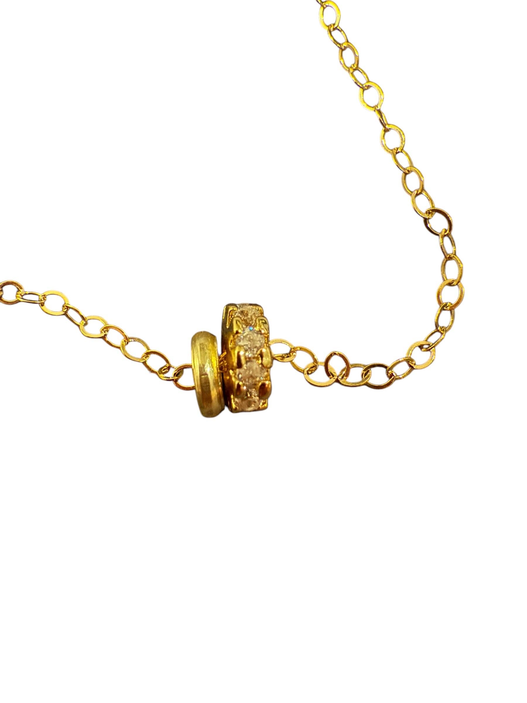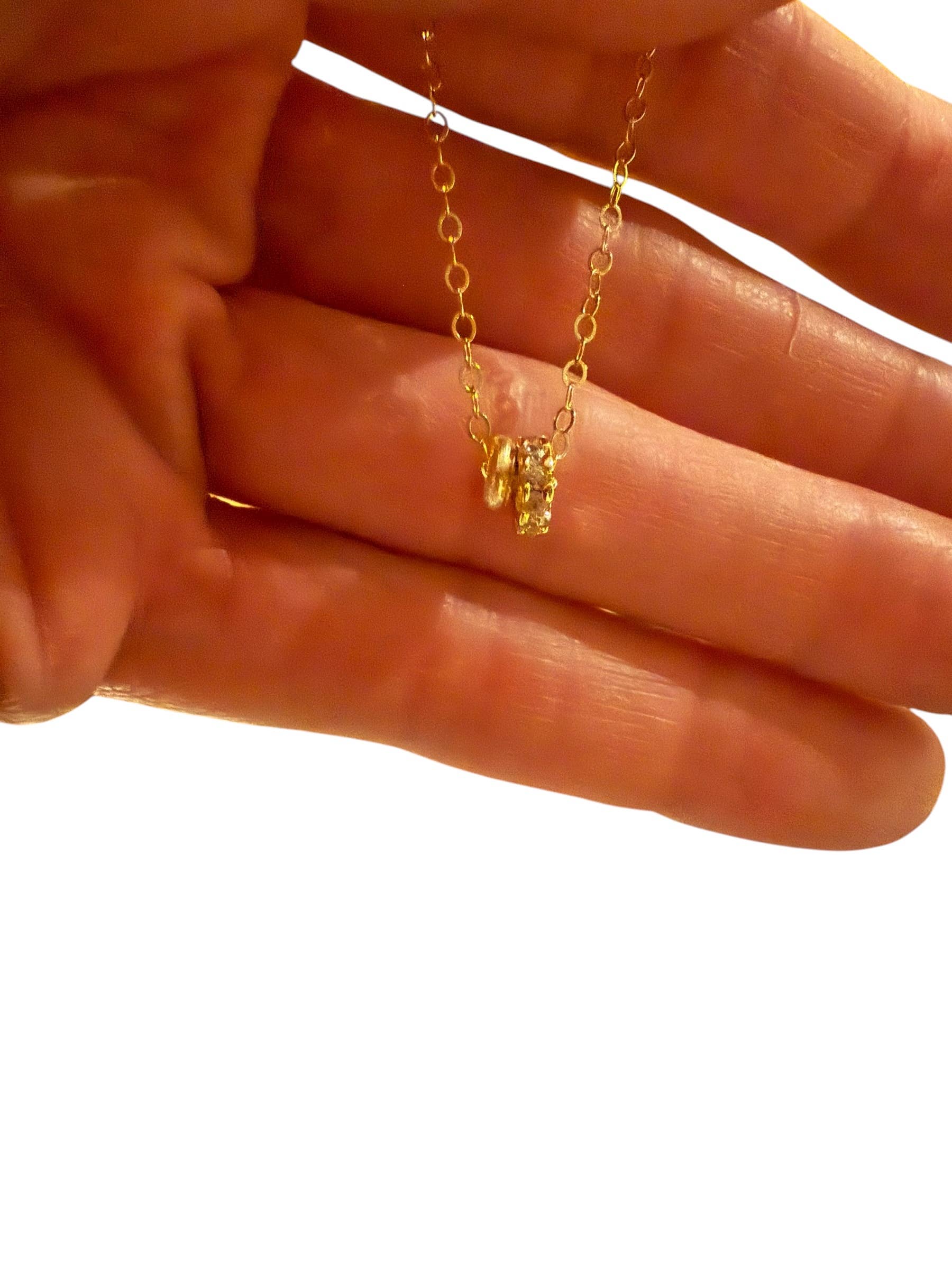 Two golden rings, side by side, distinct yet inseparable. The Kindred Necklace symbolizes the rare bond between kindred spirits, those who just get you. Simple, radiant, and endlessly connected.