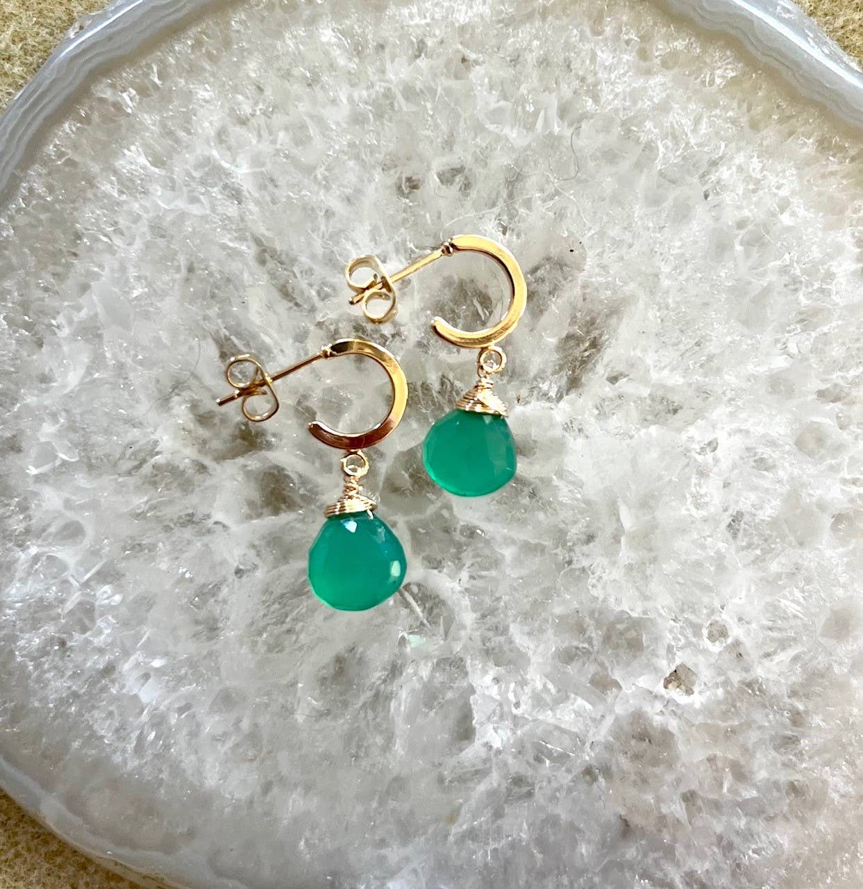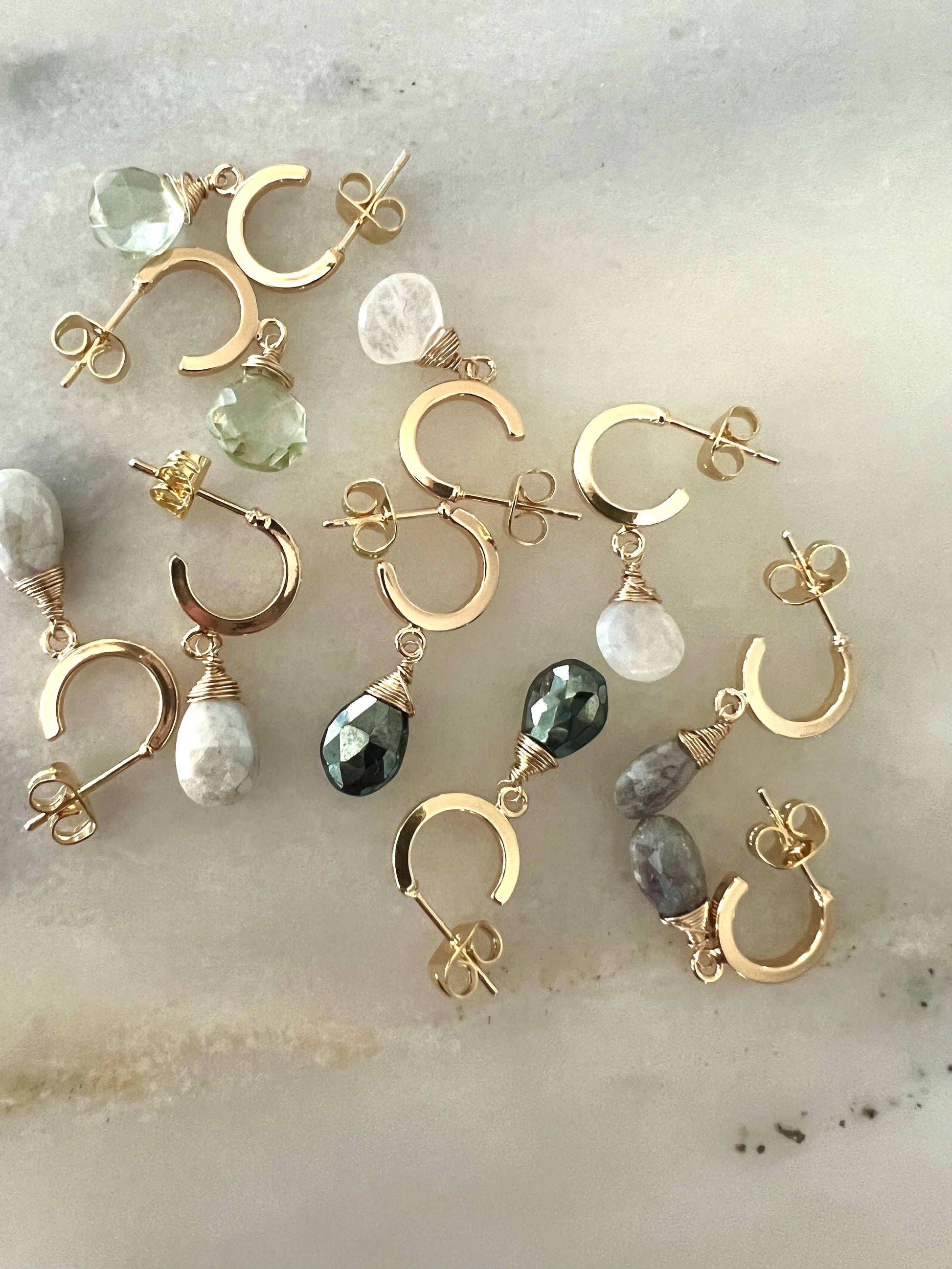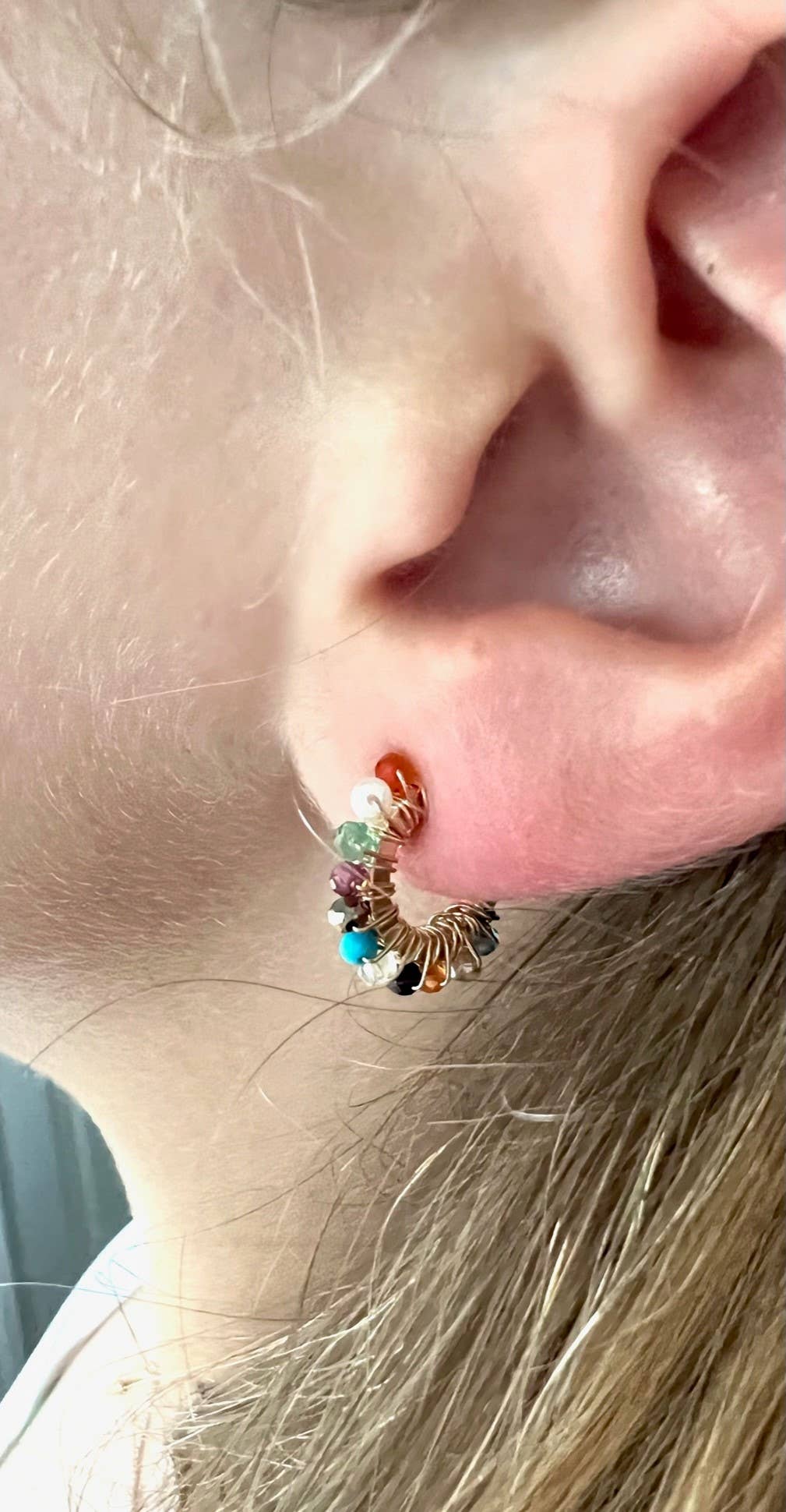 Precious gemstone wire wrapped loops,, approximately 1/2 of an Inch in diameter. So many gemstone choices, if you do not see yours listed, just choose suggest a color so we can find it. Gold plated brass.