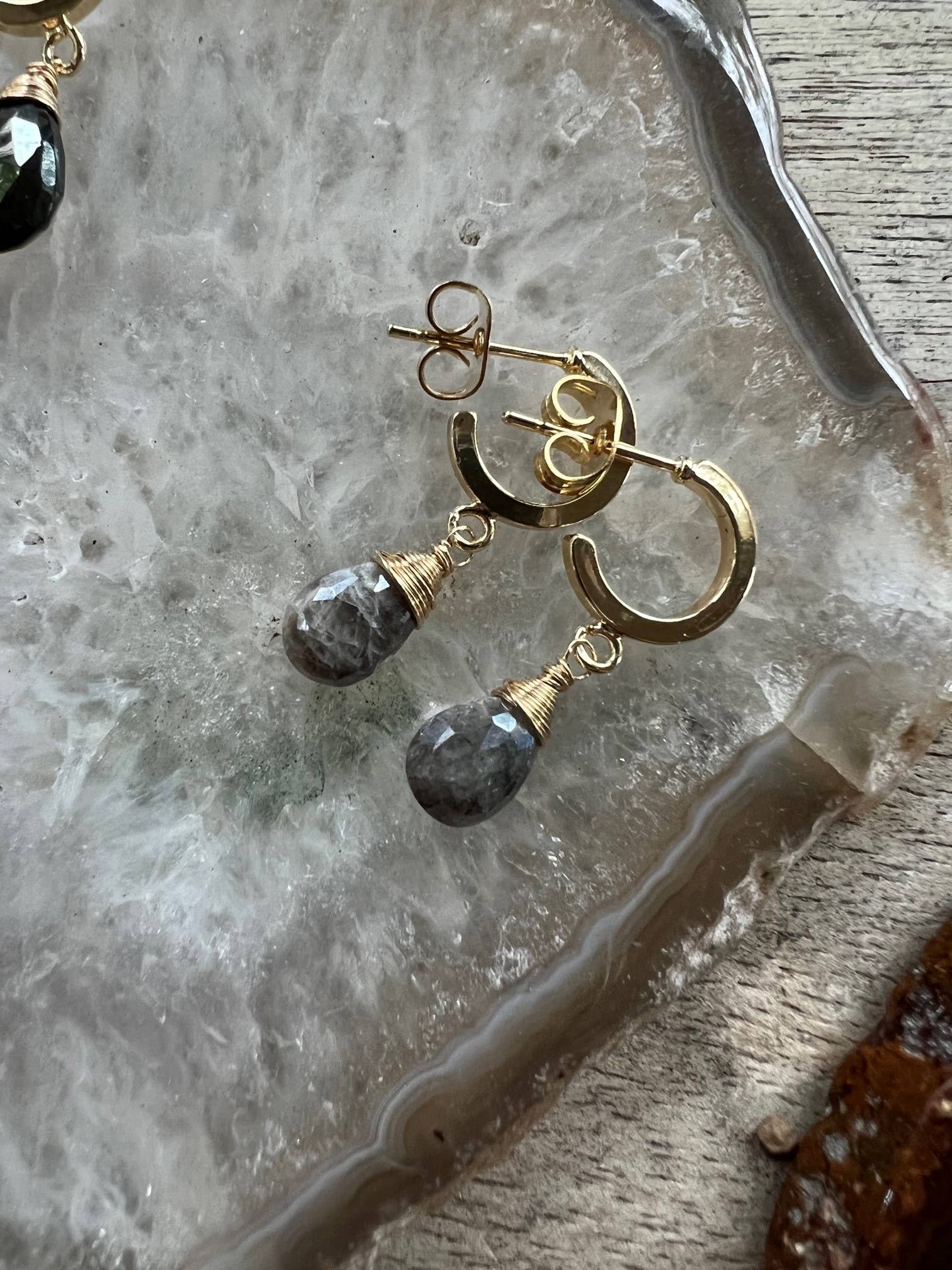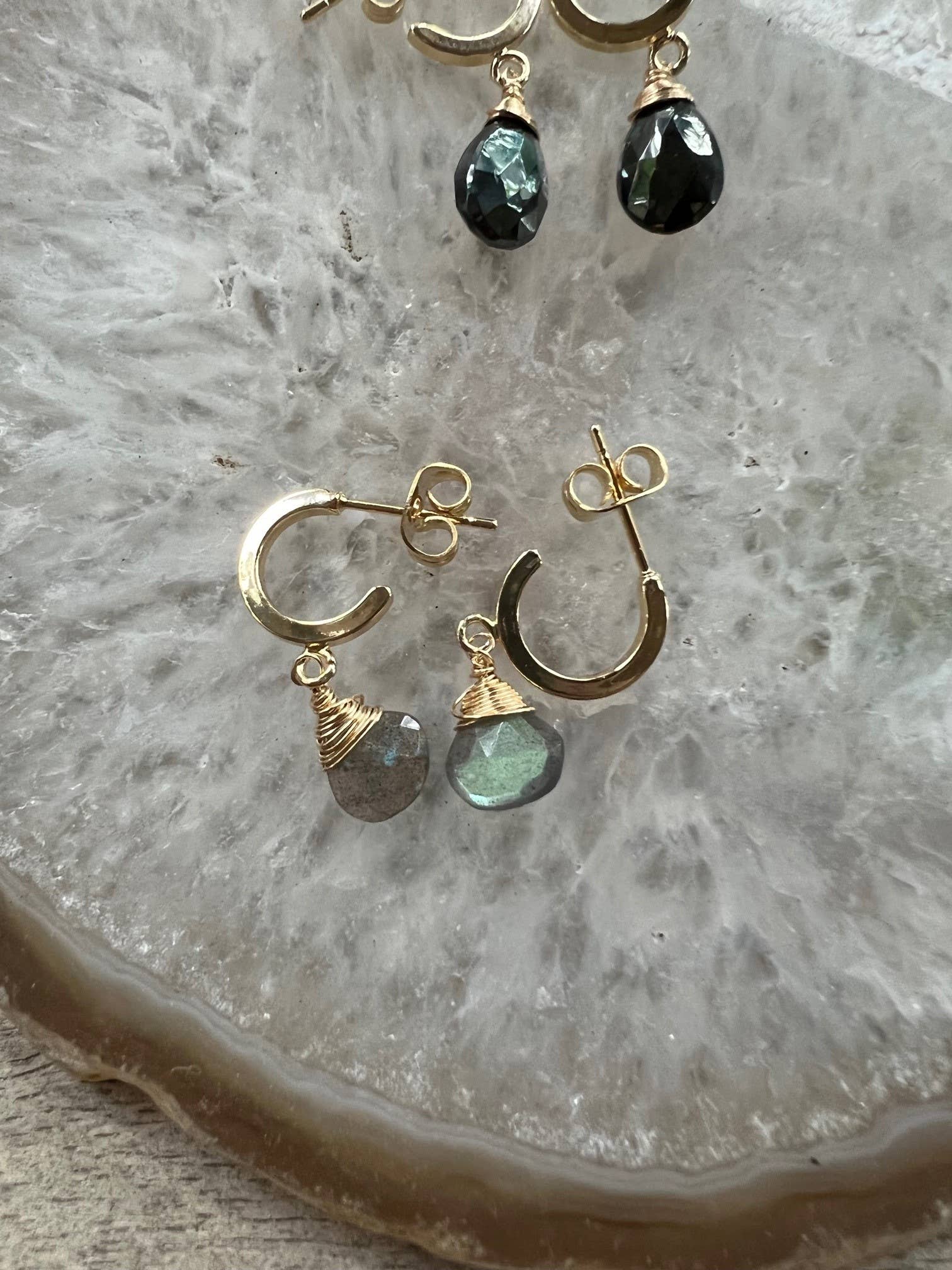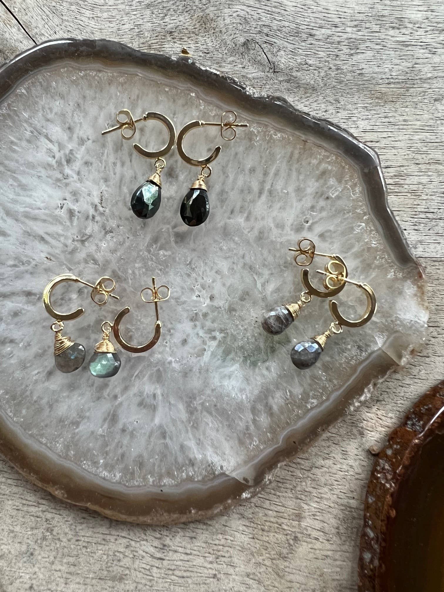 Precious gemstone wire wrapped loops,, approximately 1/2 of an Inch in diameter. So many gemstone choices, if you do not see yours listed, just choose suggest a color so we can find it. Gold plated brass.