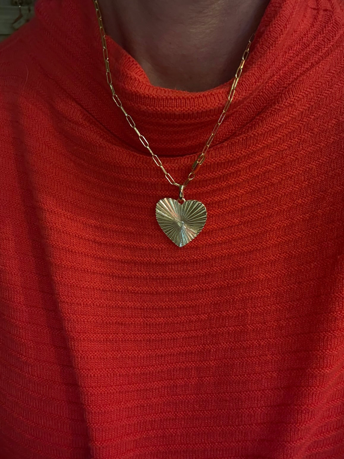 Absolutely adore this new charm pendant on the larger size, if familiar with our large vintage heart it's slightly bigger. gold on paperclip chain 18-20"