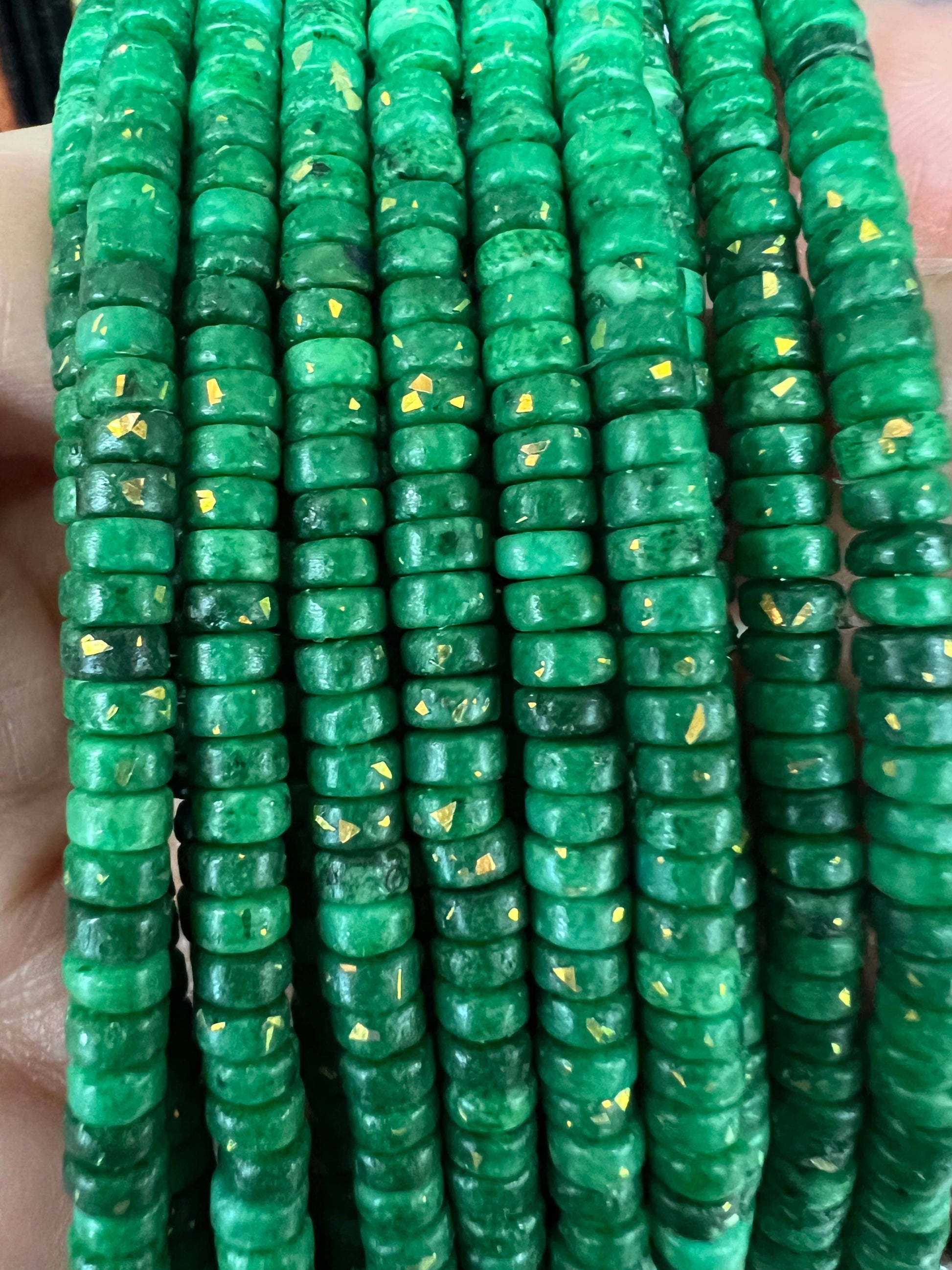 Dolomite beads with perfect gold inflections,, brass spacer accent beads.. The spacers will be shown throughout this style just like shown on the purple and turquoise versions. we have eliminated the center gold segment of beads as that was not as popular.