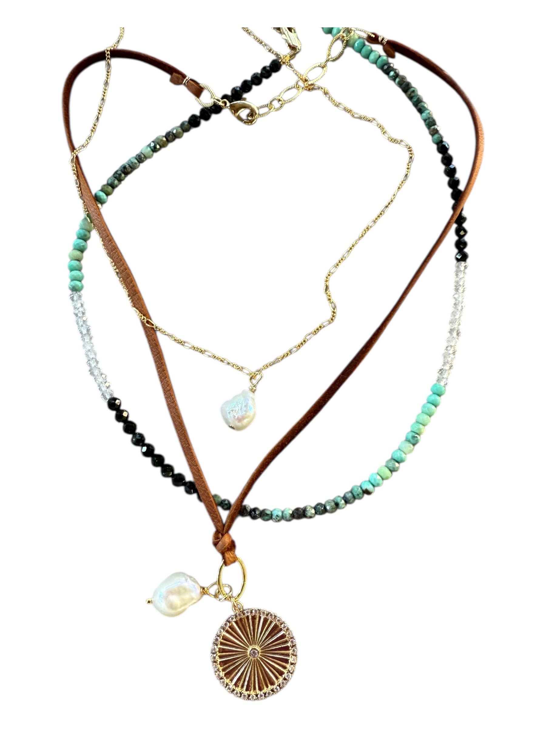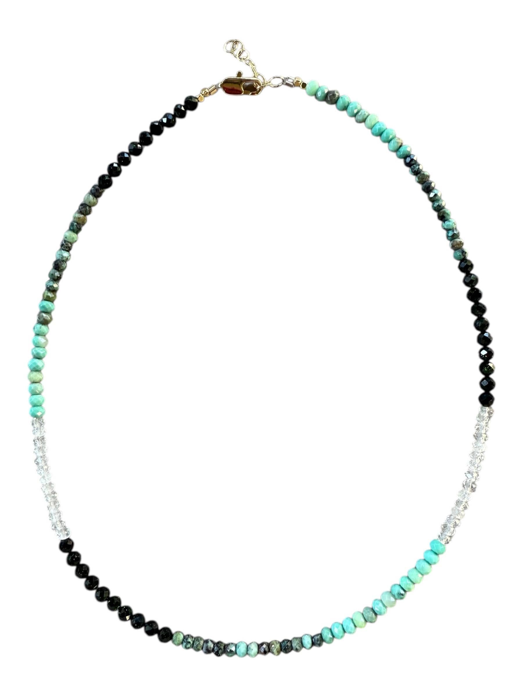 Not the salad, but the necklace,, semi precious, dark dark green almost black looking, two medium greens and crystal quartz,, great piece to add a pendant to.