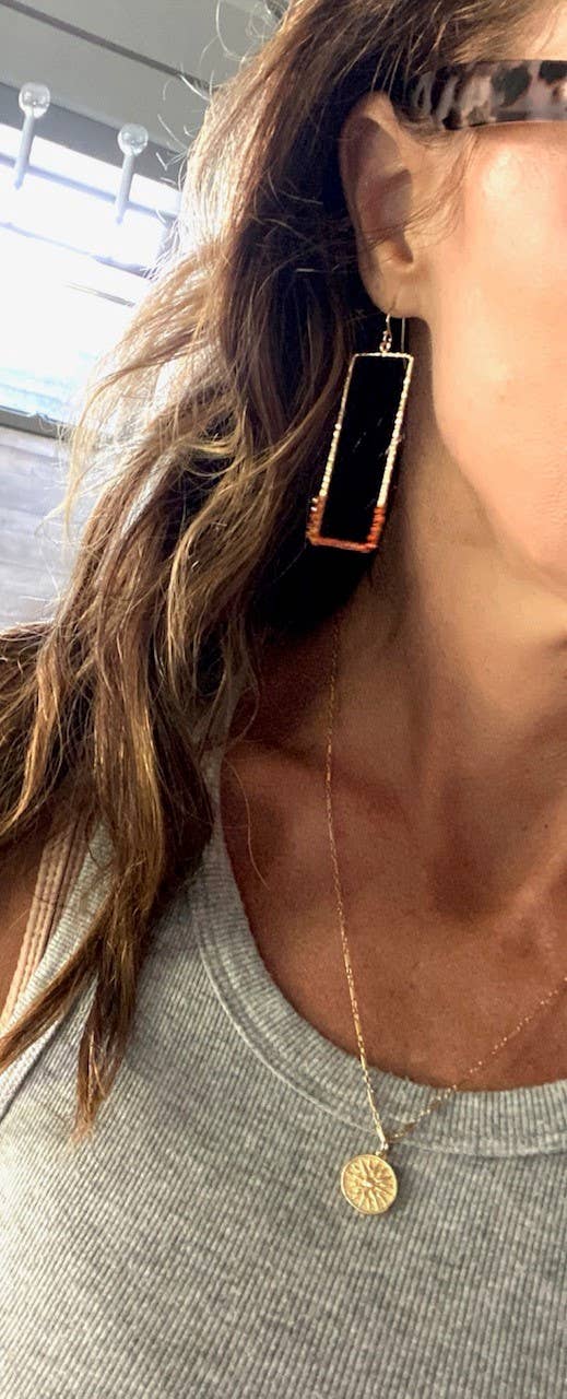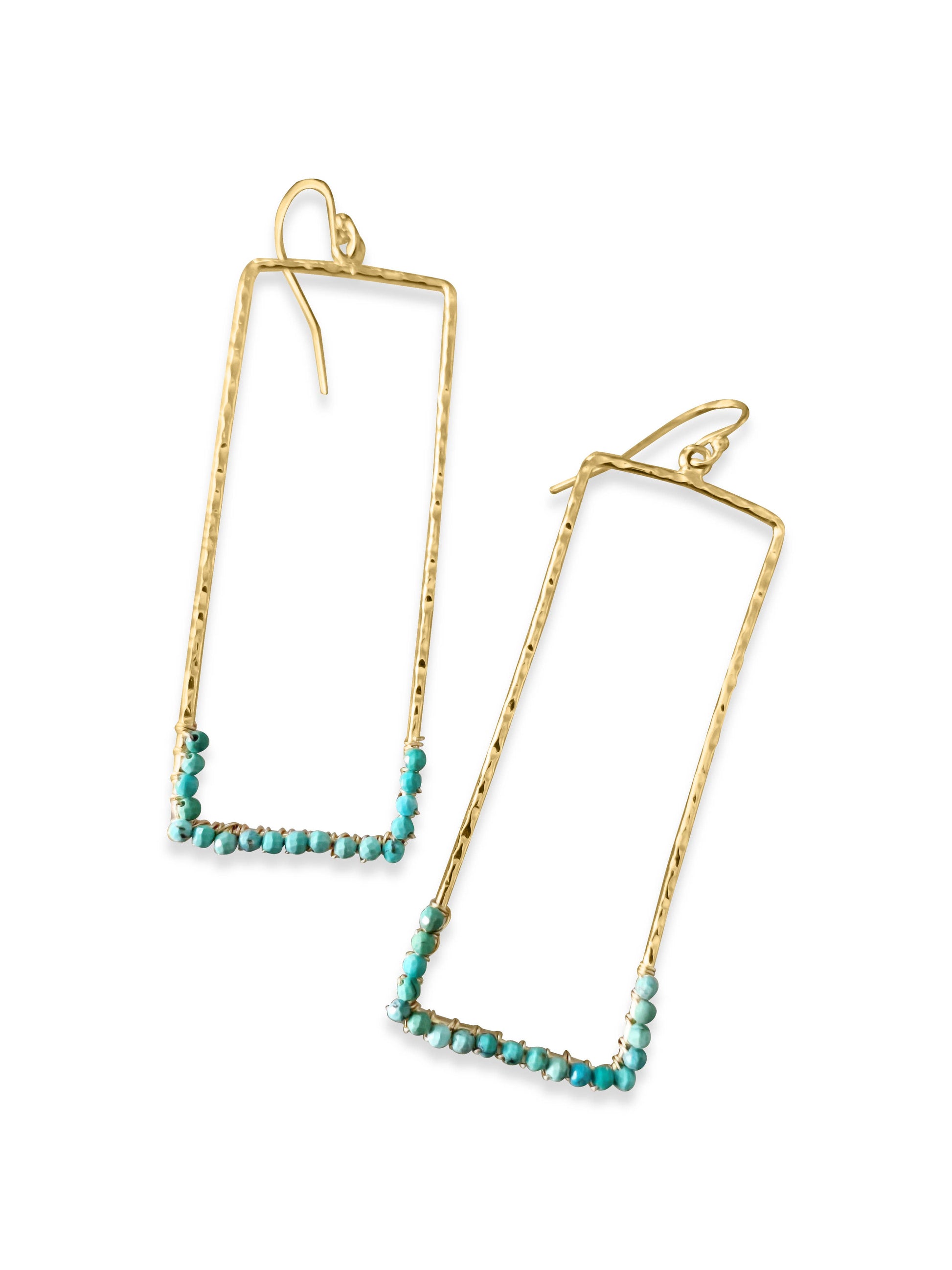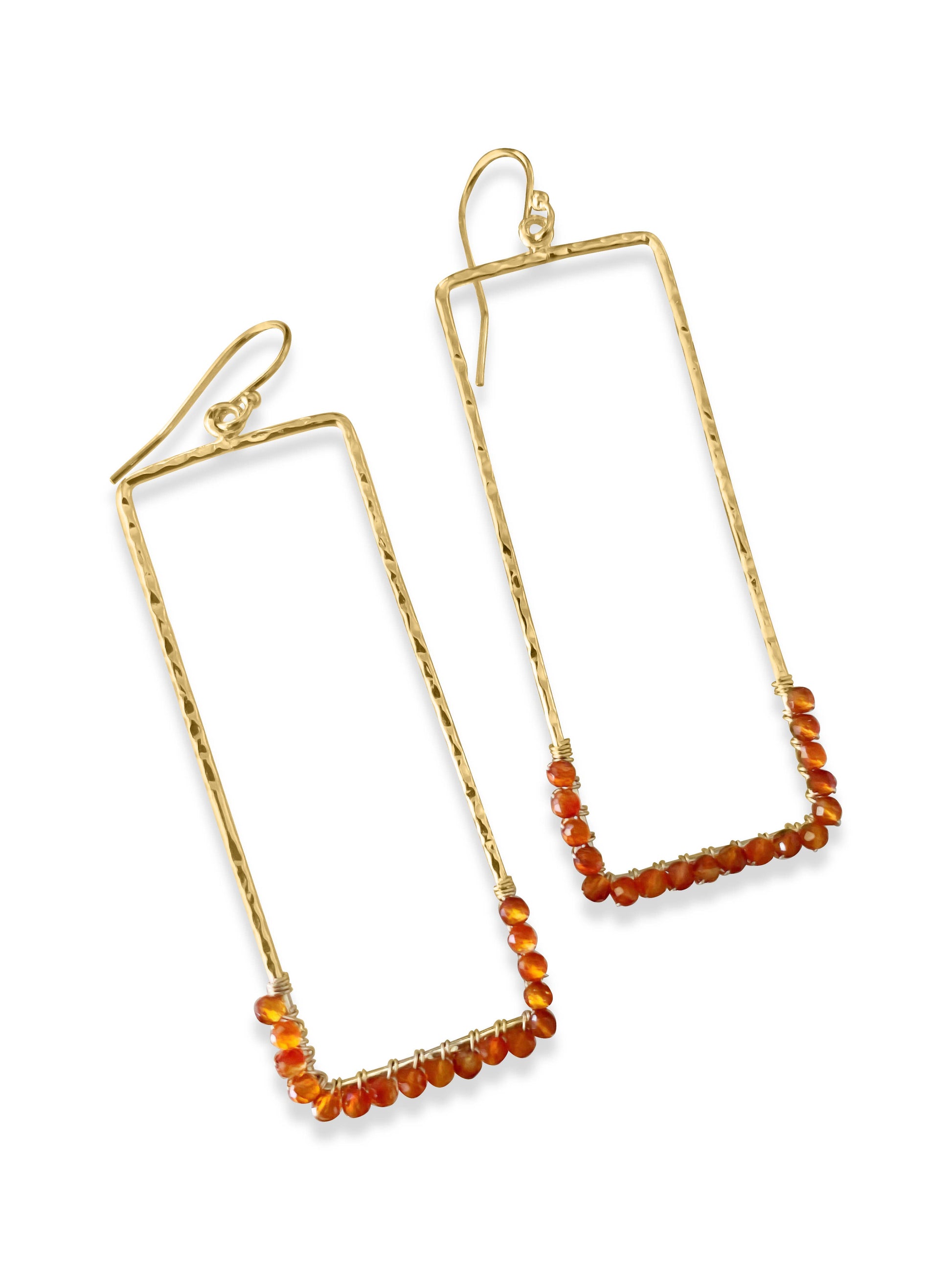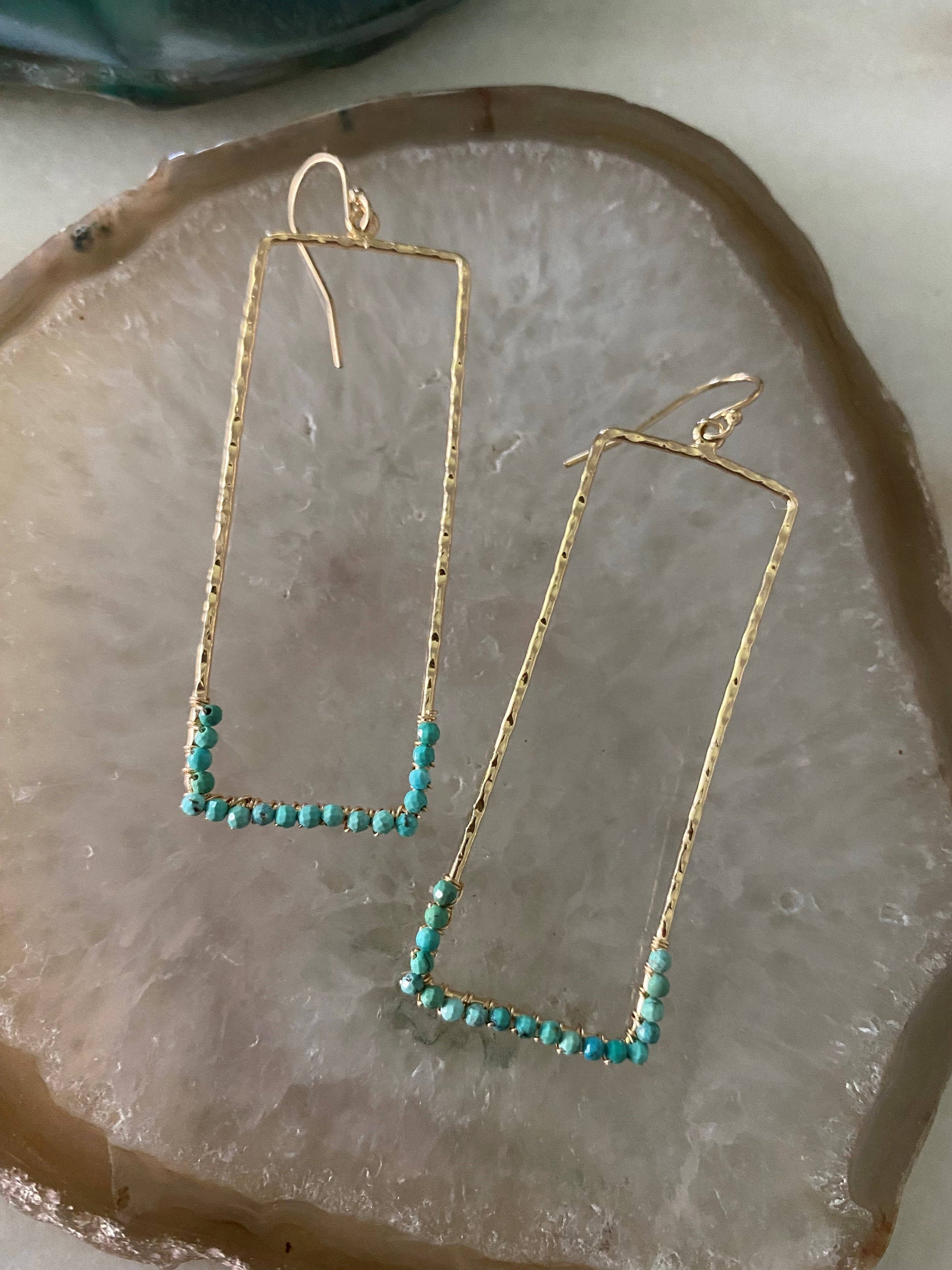 2 1/4" in length, plated finding, gold filled ear hooks, wire and semi precious gemstones, choose from assorted gems below. Feather light in weight.