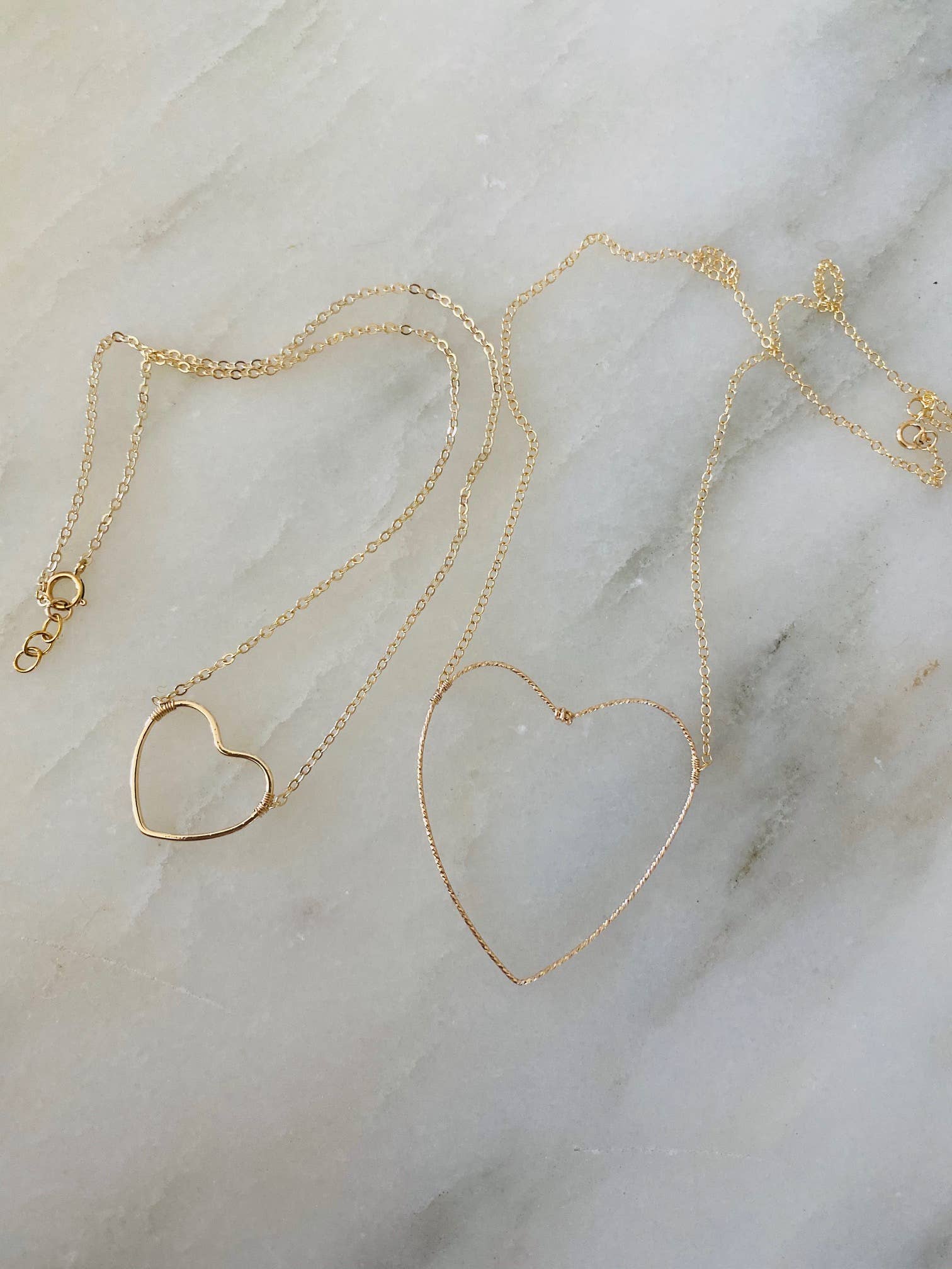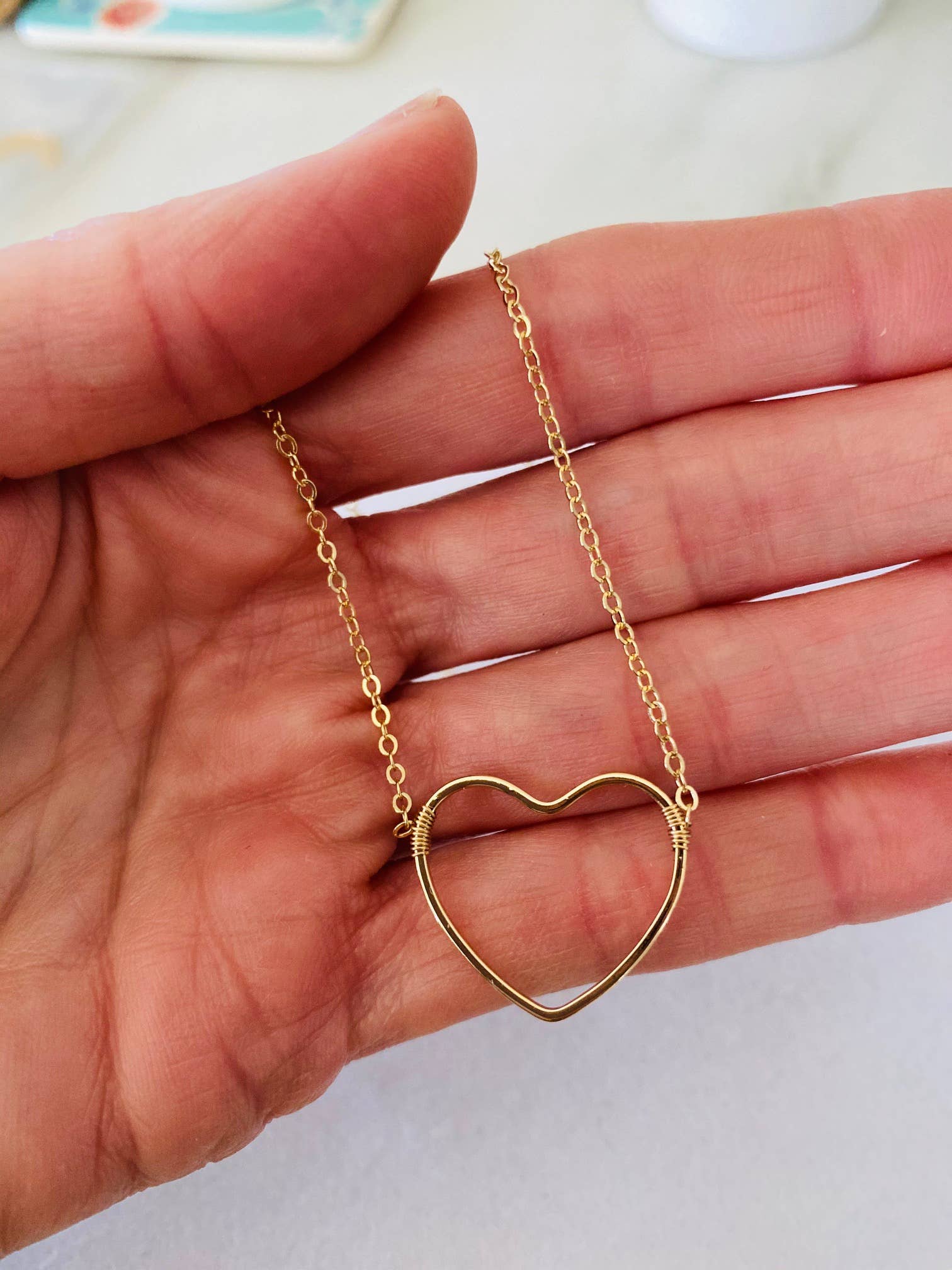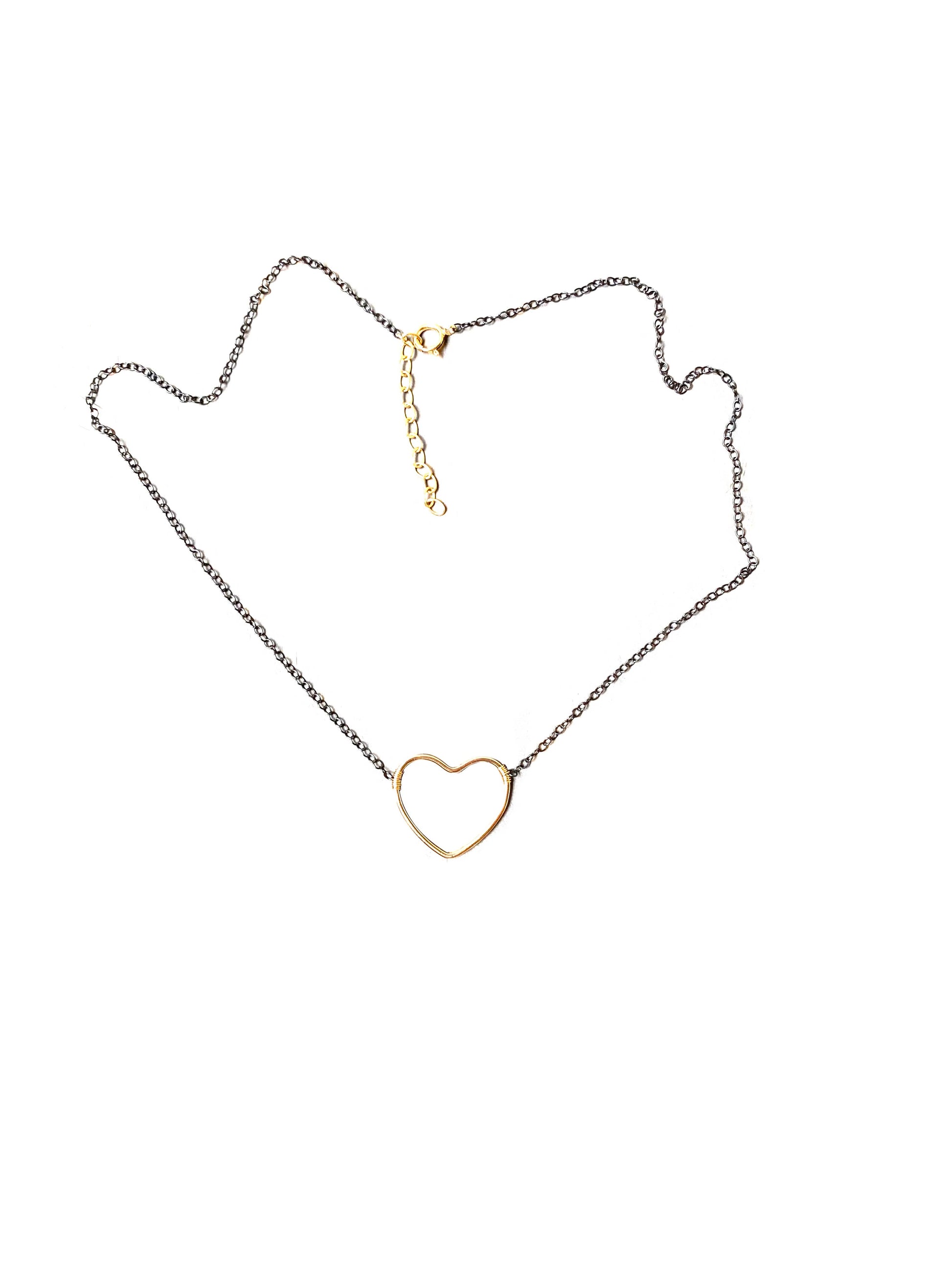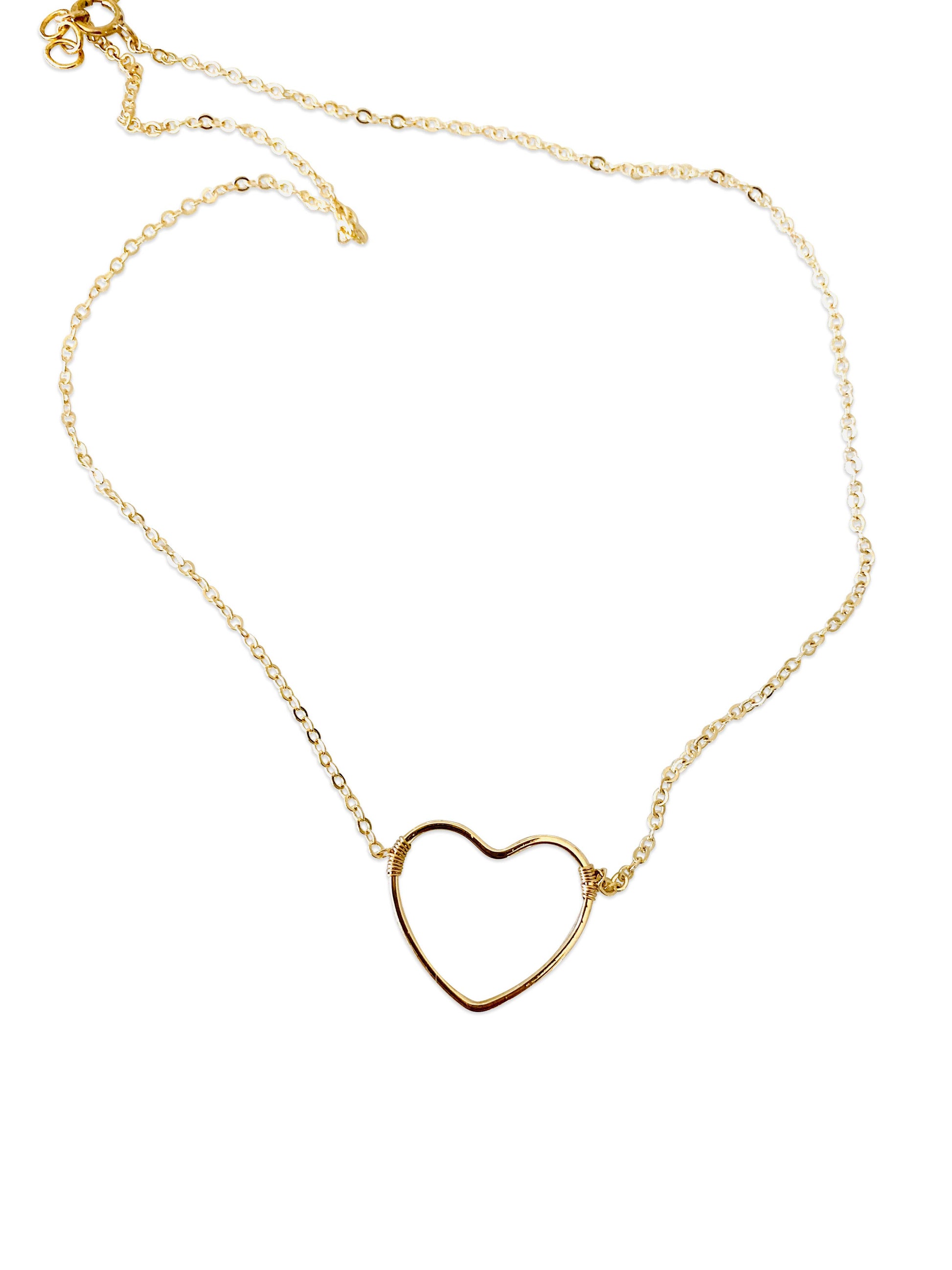Multiple lengths below, long term best selling heart necklace, is approximately 1" in size on a 14kt GF cable chain with gf wire wrapping and clasp. Extender is 1.5" choose length below.