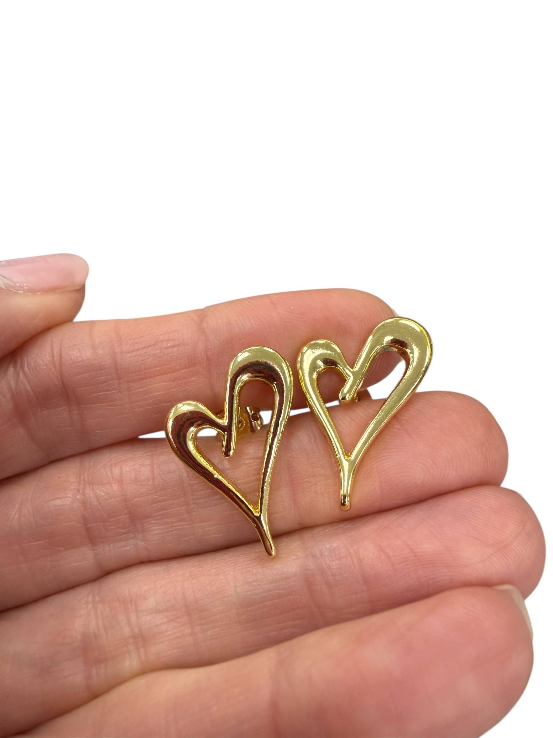 Minimal yet expressive, these open heart stud earrings feature a modern, fluid silhouette with a polished plated finish. Lightweight and easy to wear, they add a subtle statement perfect for everyday styling or gifting moments. A versatile addition to any jewelry assortment, ideal for boutiques focused on contemporary, romantic, or minimalist aesthetics. See Mila hearts for CZ silver drops featured.