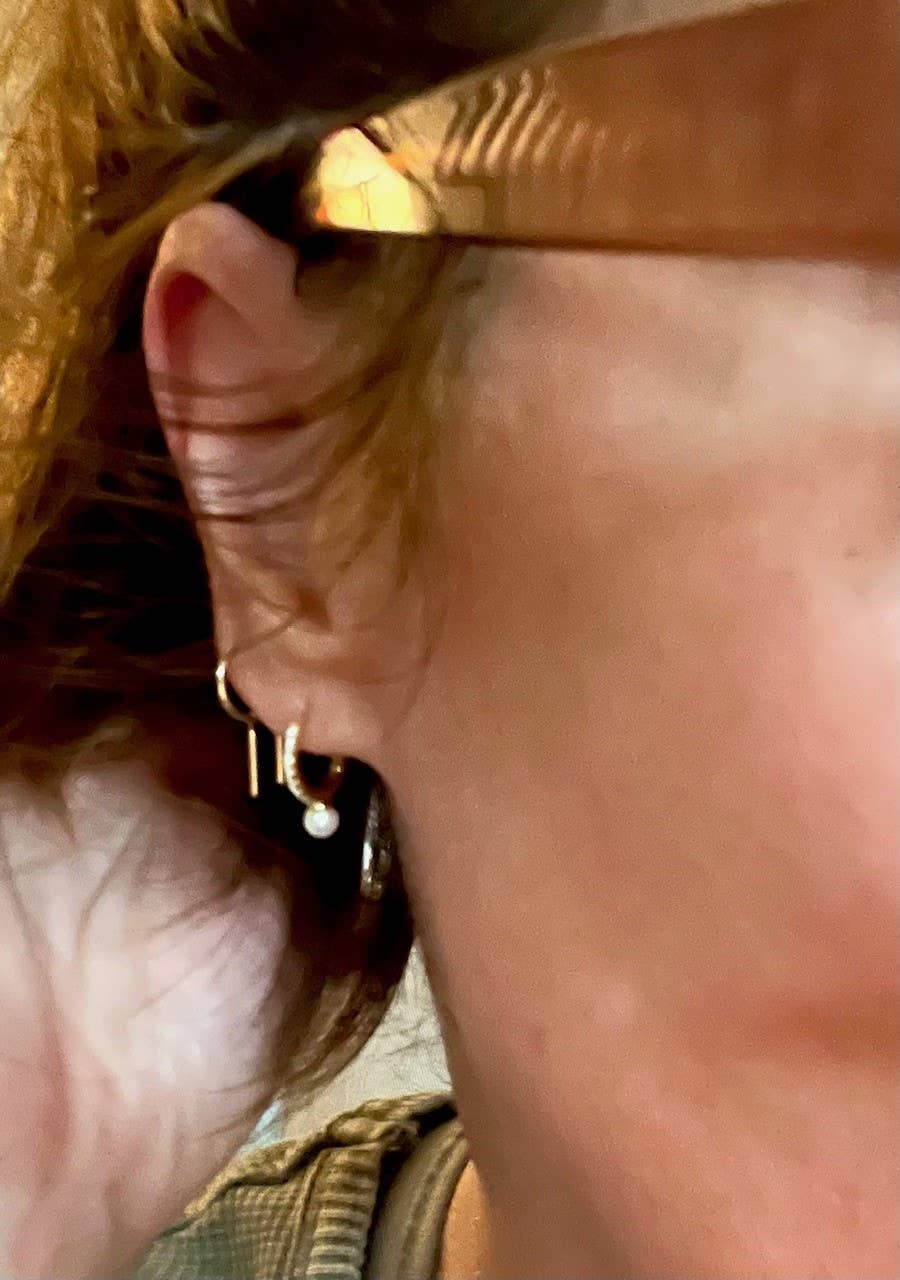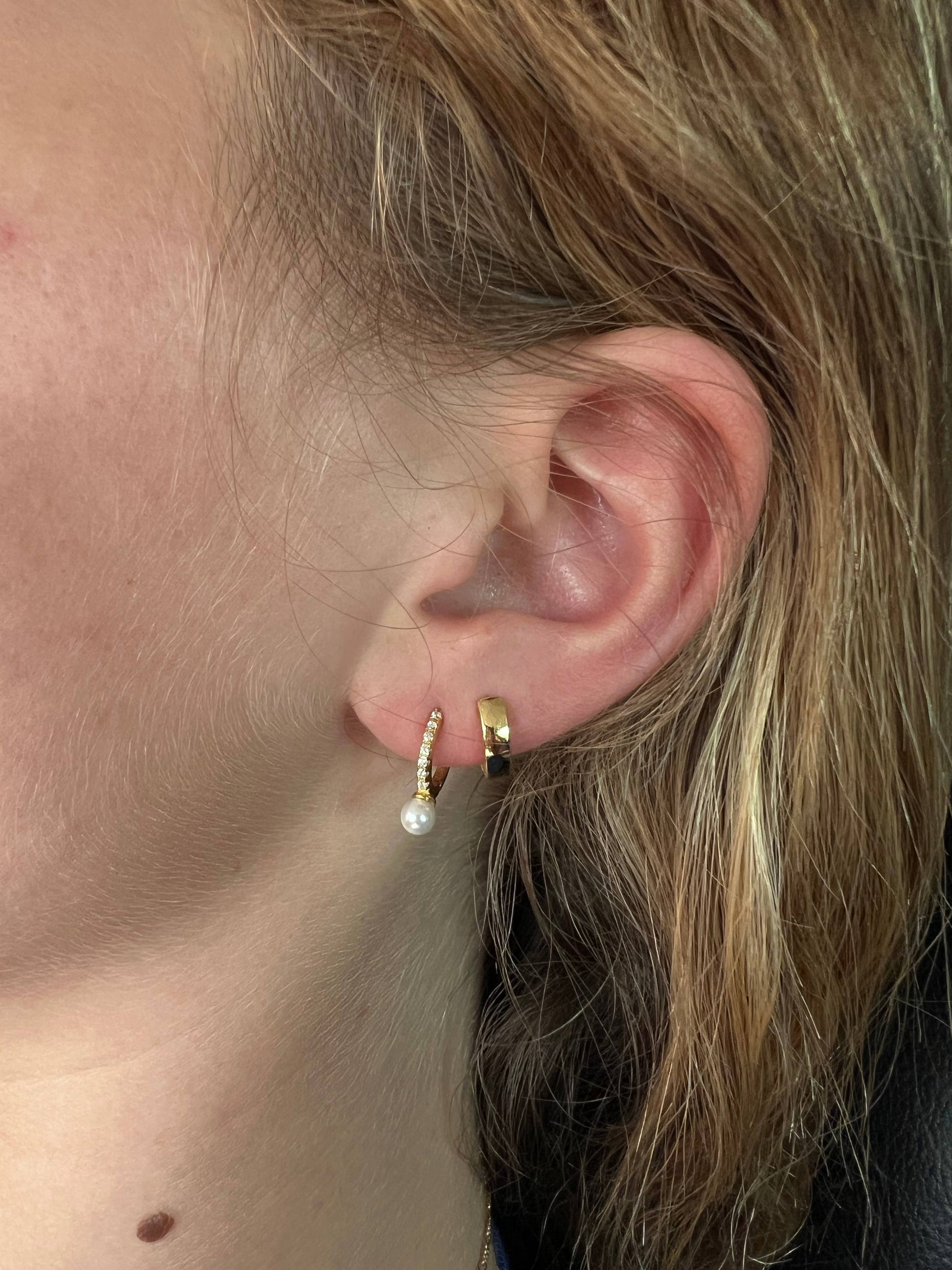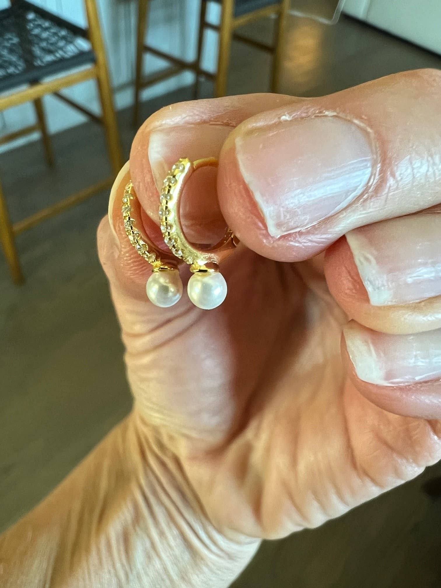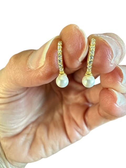 10mm micro cz hugs, snap hoops with an adorable pearl drop in gold vermeil.