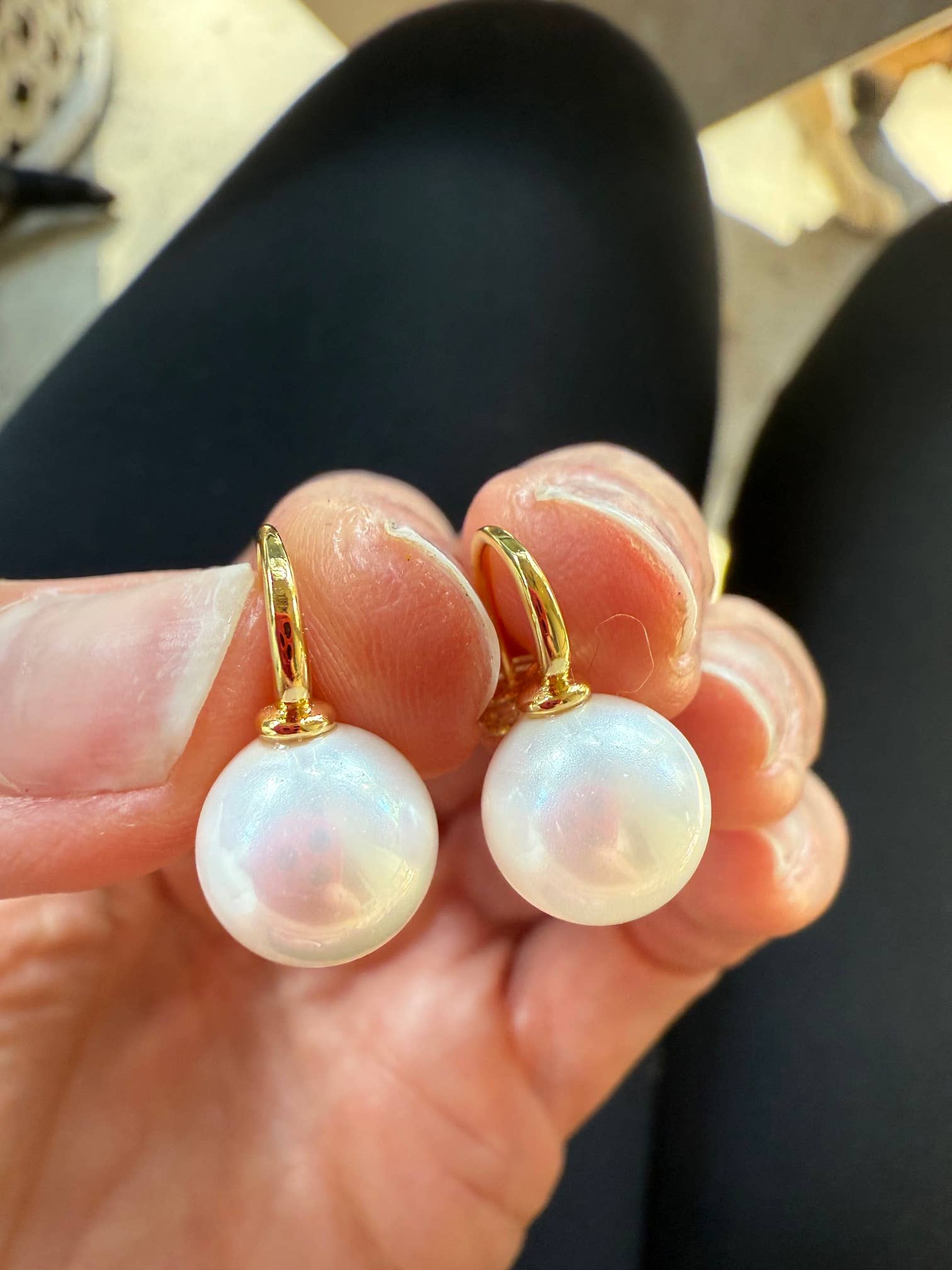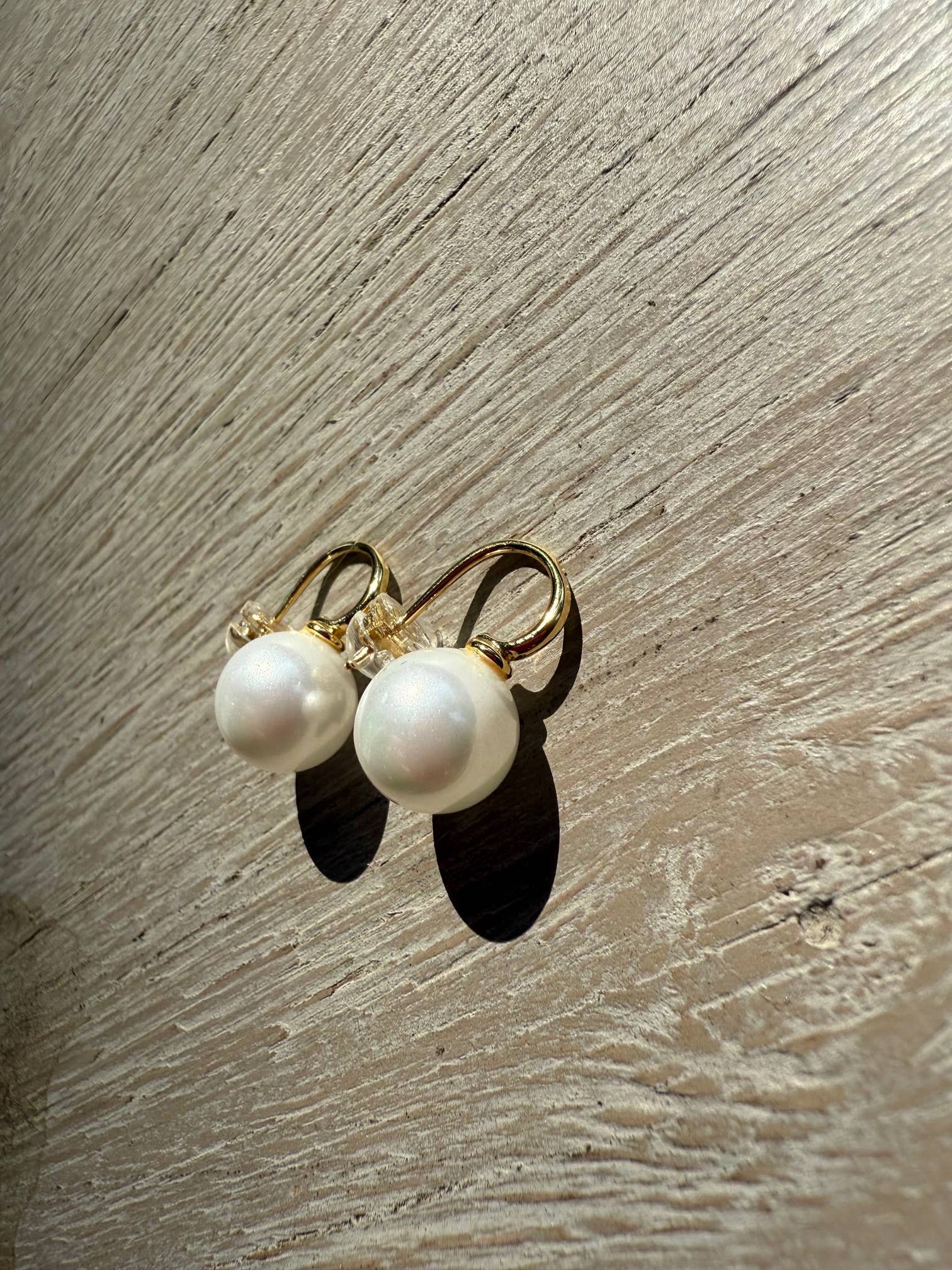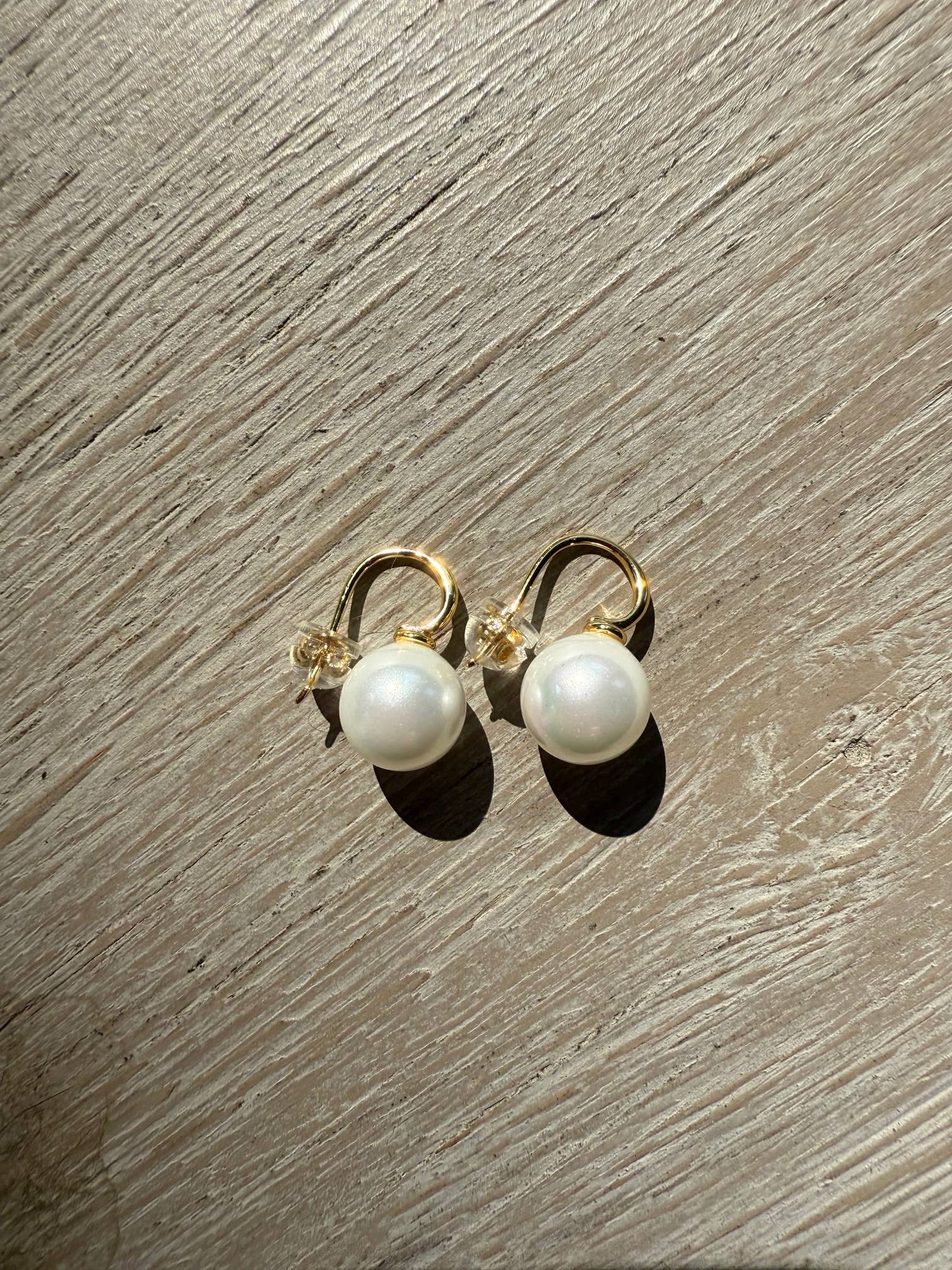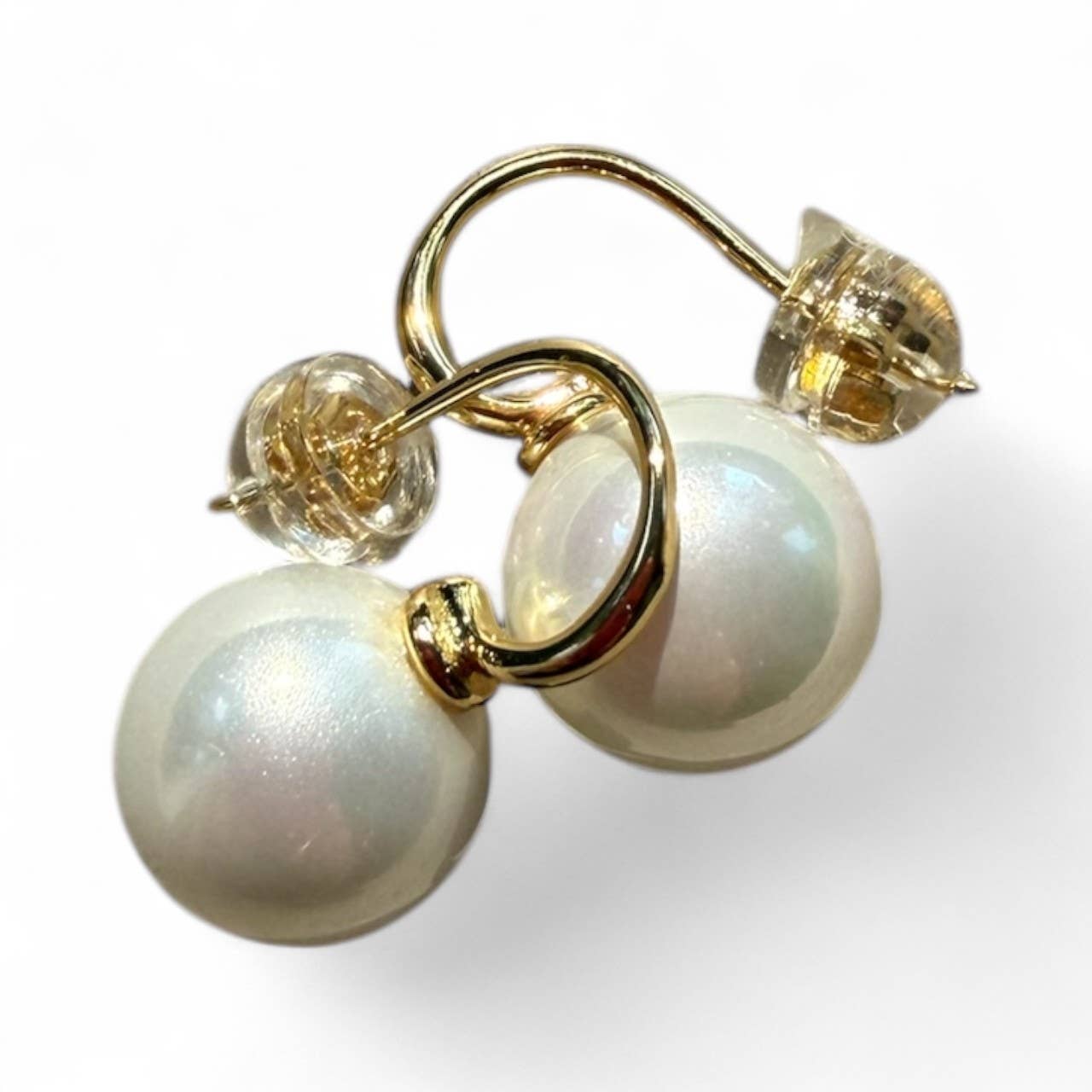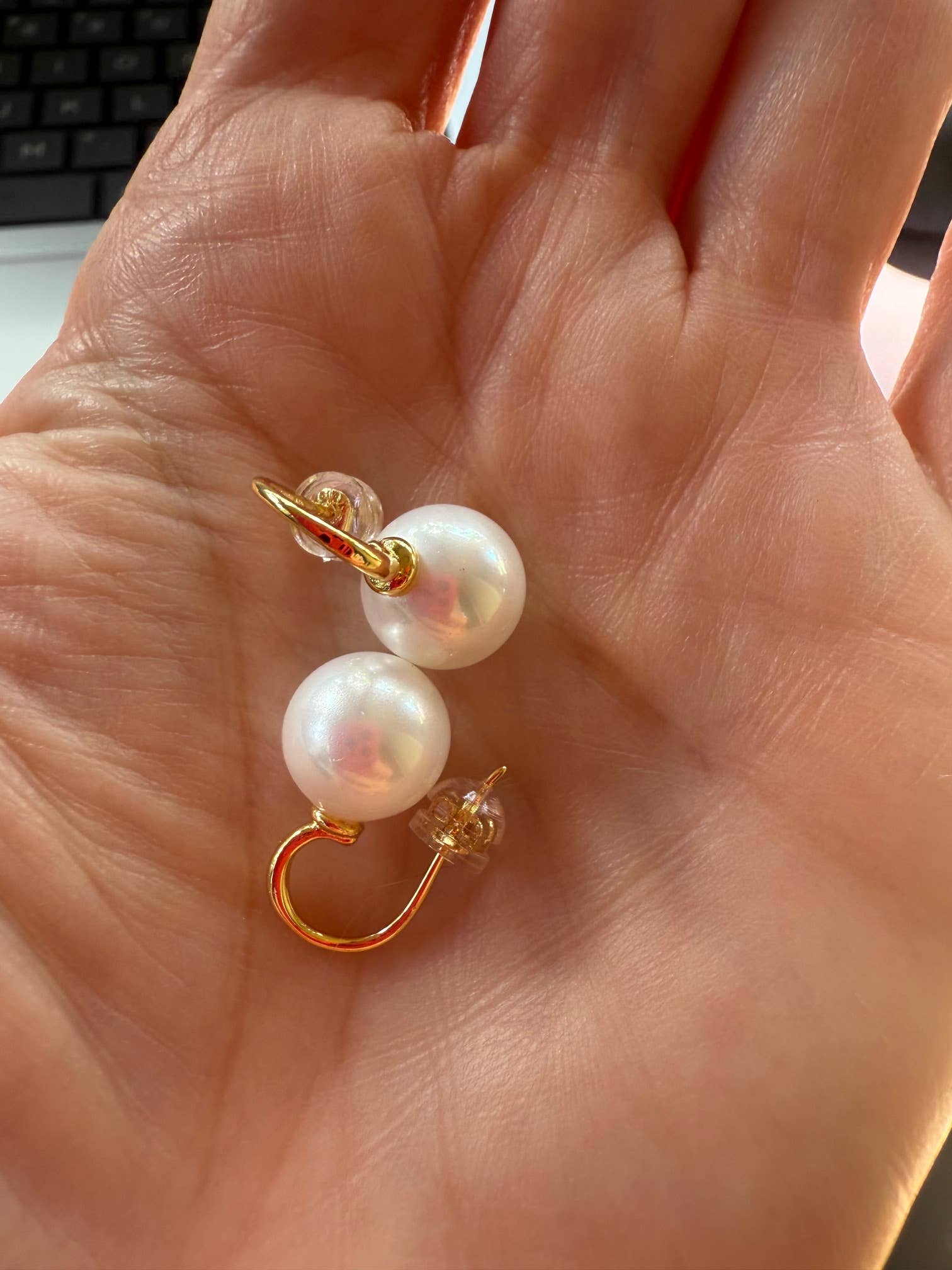 Love these chunky classic short pearl drops. Plated, faux pearl,, gold over copper. Rubber backing included.