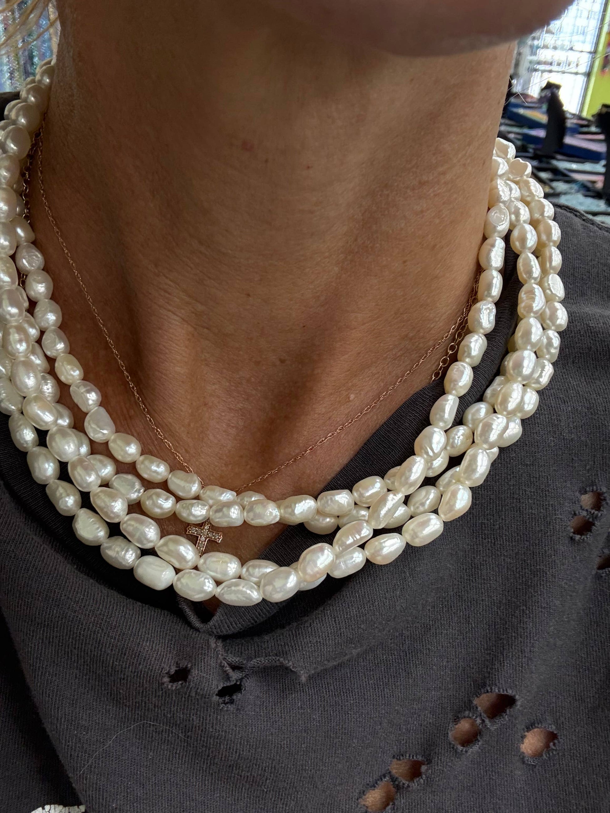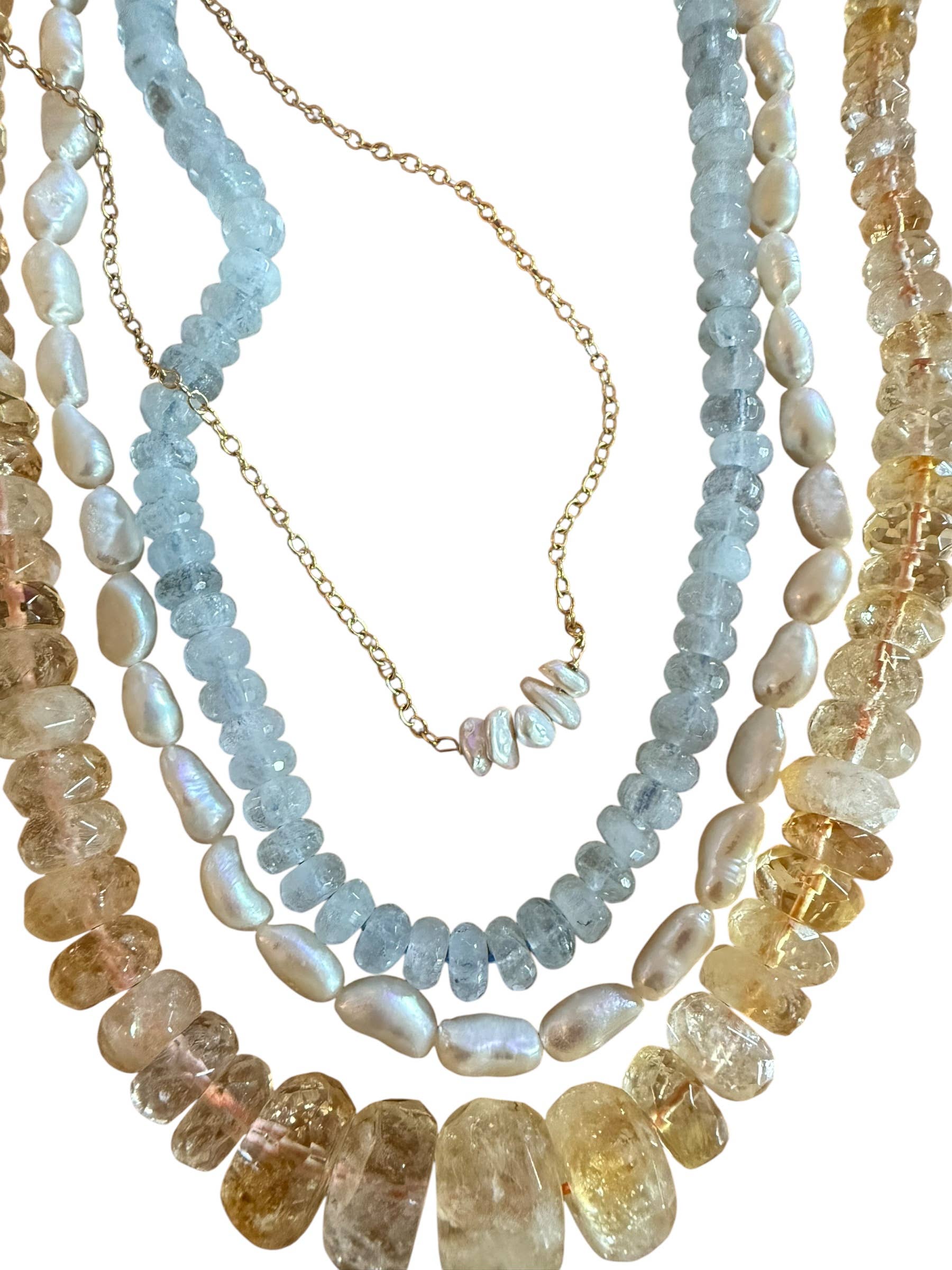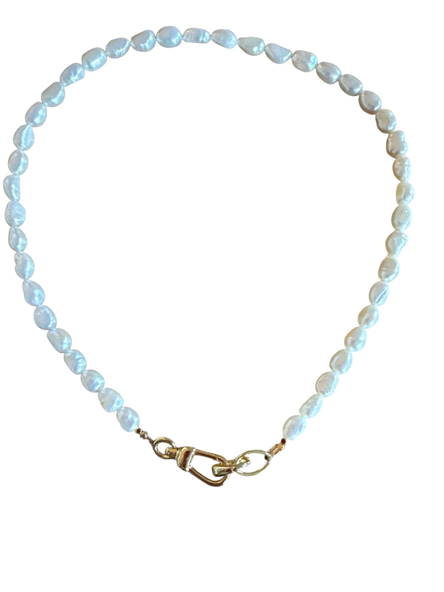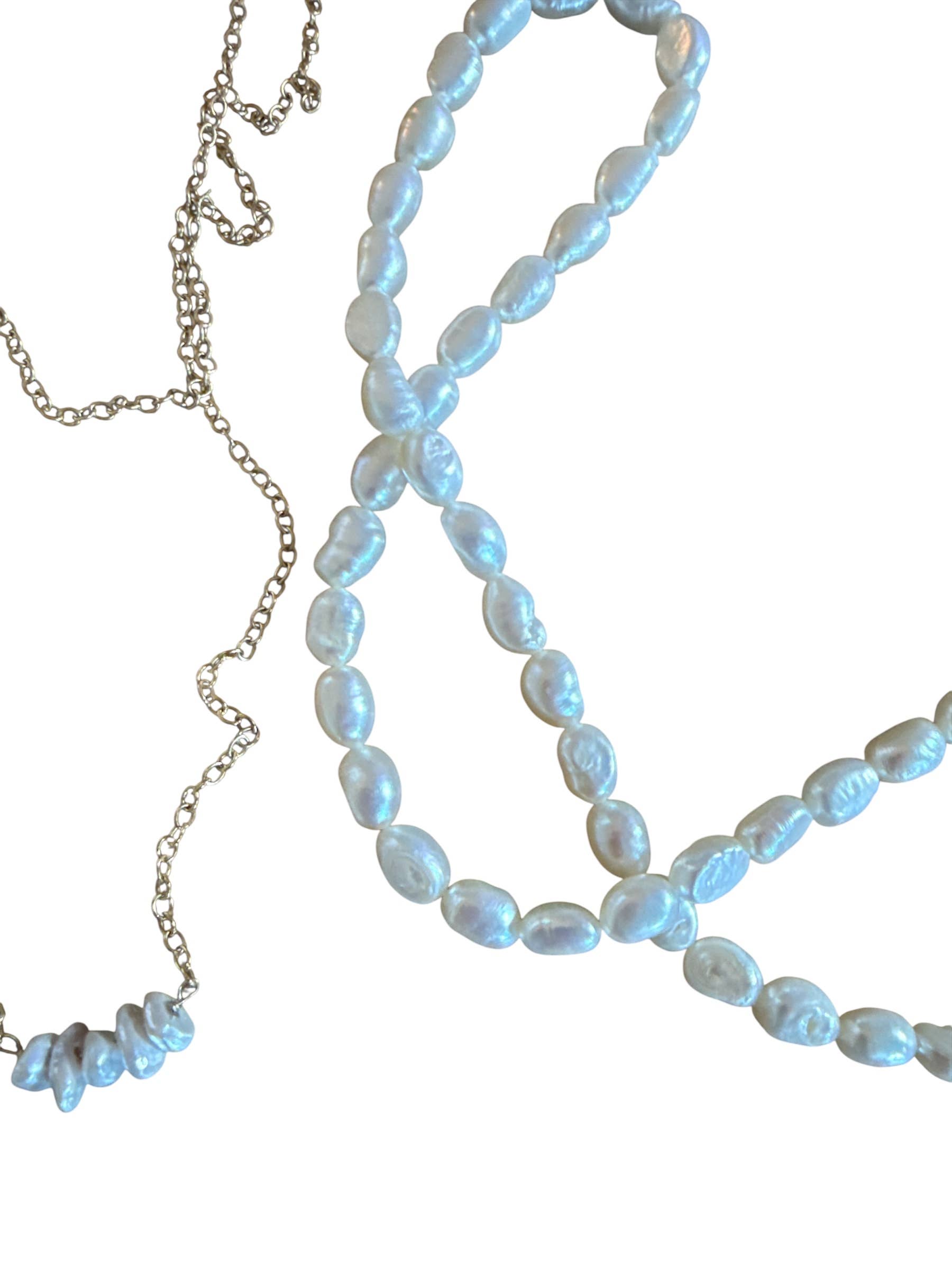 Lovely freshwater pearls, simplified to the easiest most wearable layering necklace of the season. Choose from variable length below. Have it knotted for an extra fee.
