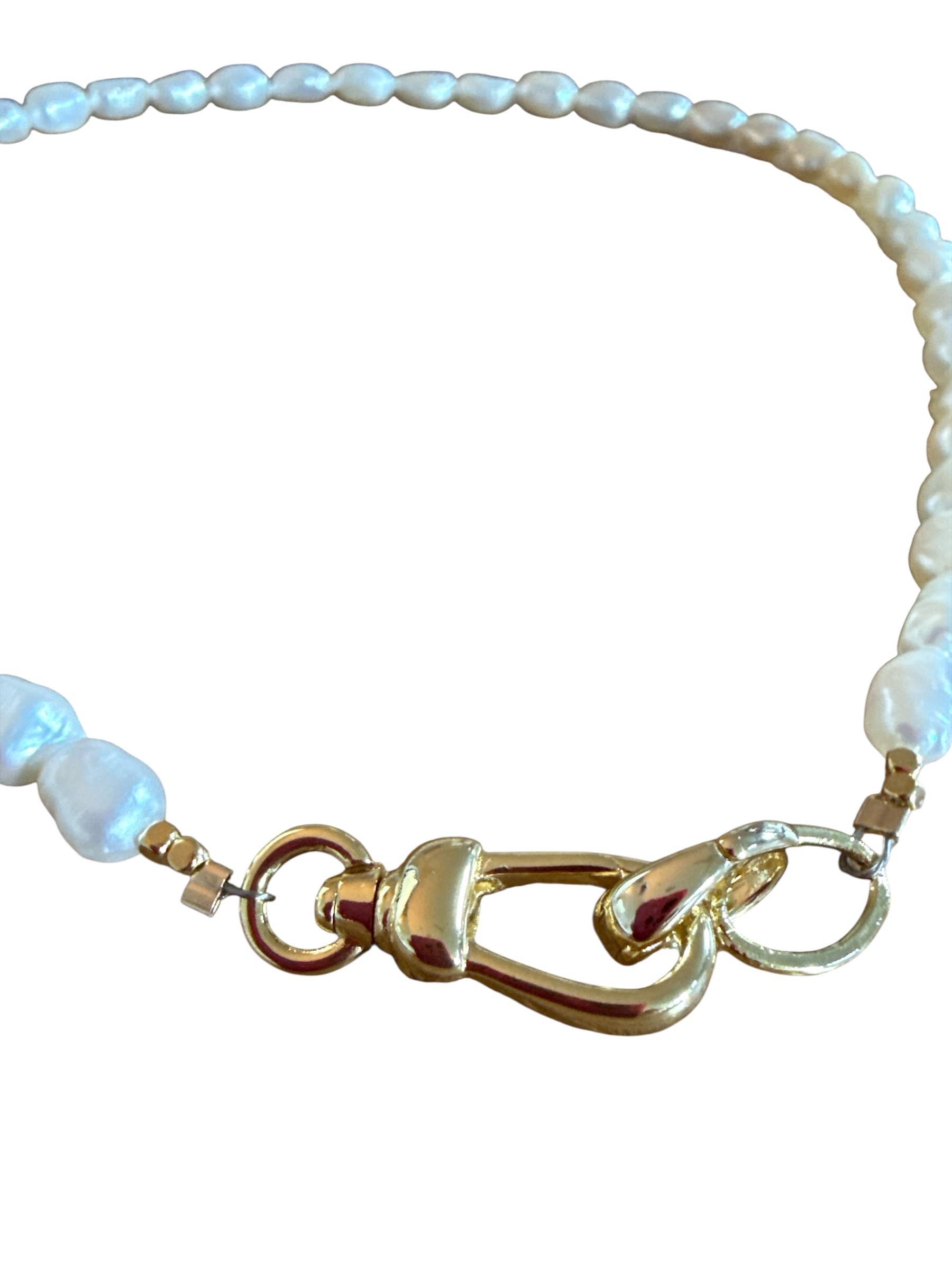 This clasp allows for the addition of your own charms. It looks cute in the front of the neck or the back. Plated gold.