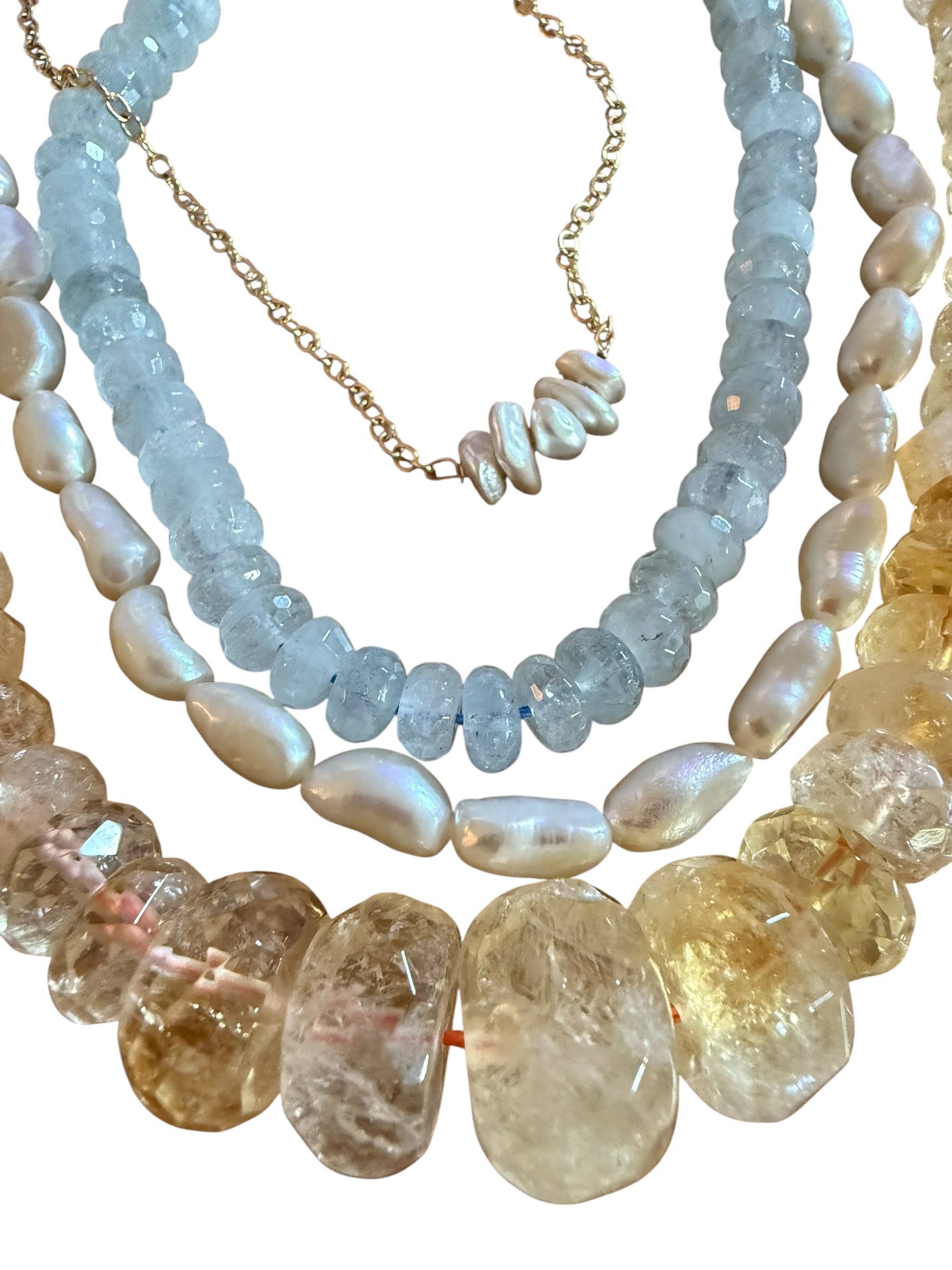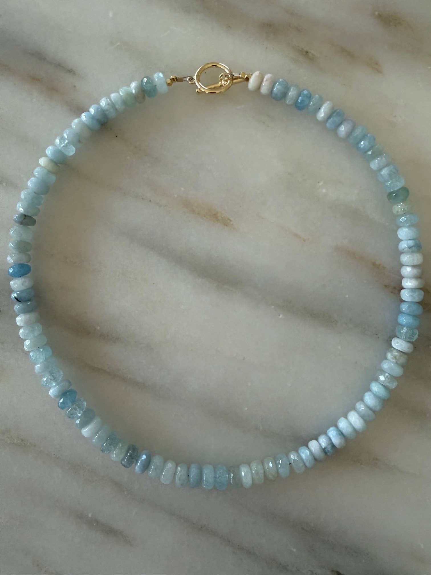 Gorgeous faceted aquamarine stones, this is a hand selected high end necklace with a lovely large toggle clasp. approx 16 to 17" in length.