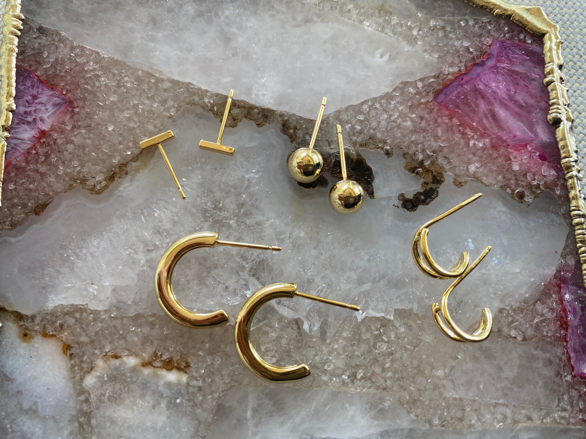 Introducing our Tiny Gold Bar - a best seller! Made of delicate gold plated brass, these bar studs are perfect for everyday wear and look great in second or third hole piercings. Simple, yet stylish, these studs will elevate any outfit.