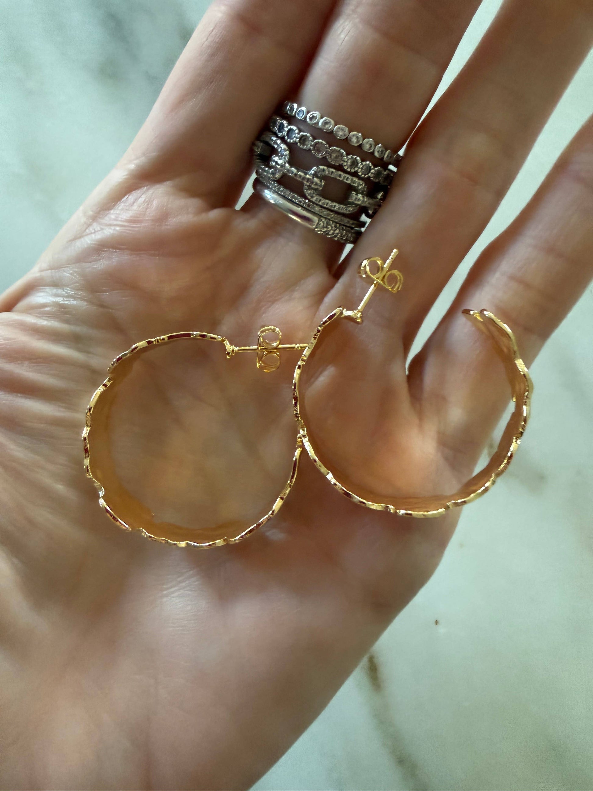 Ahh these are so fun and funky! They have such an organic and also simple design, shiny gold plated brass posts, 1.5" diameter and super lightweight for the most comfort.