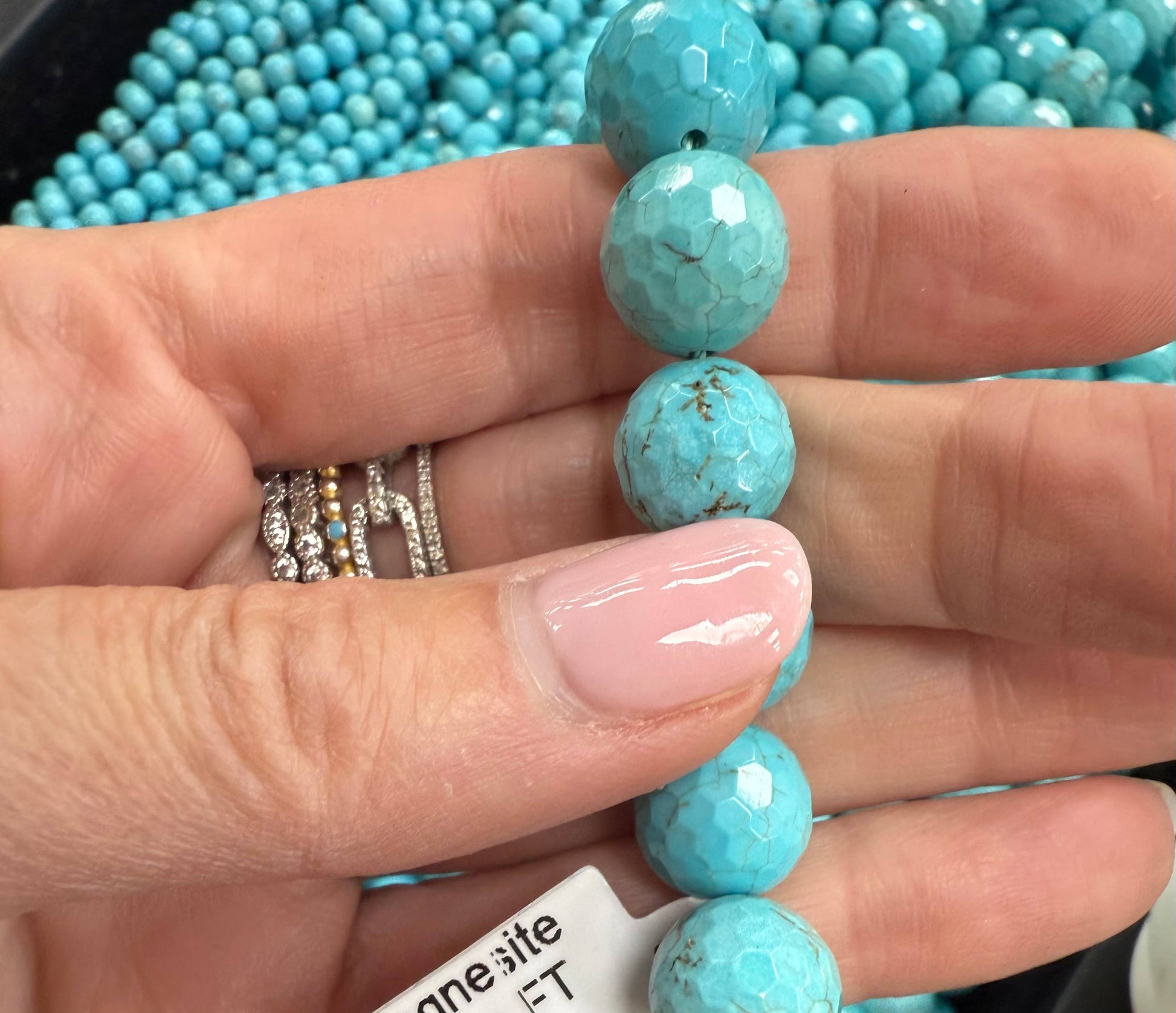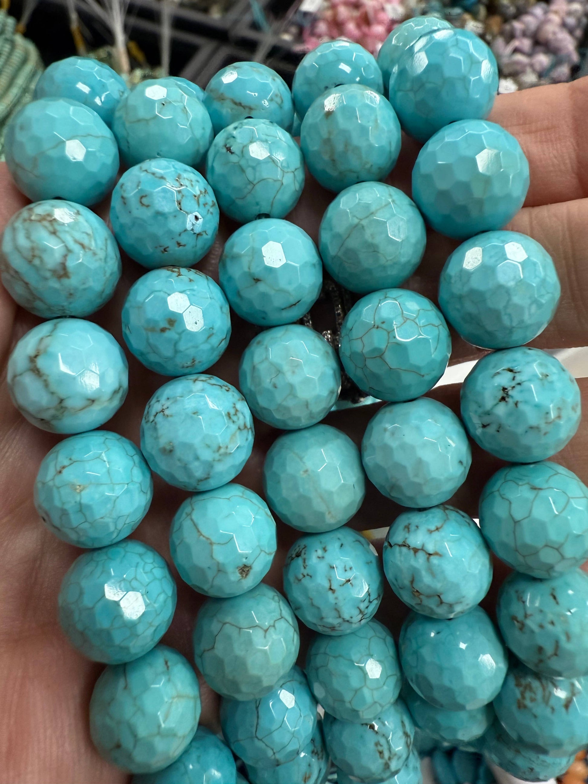 14mm beautiful turquoiose magnesite faceted balls.