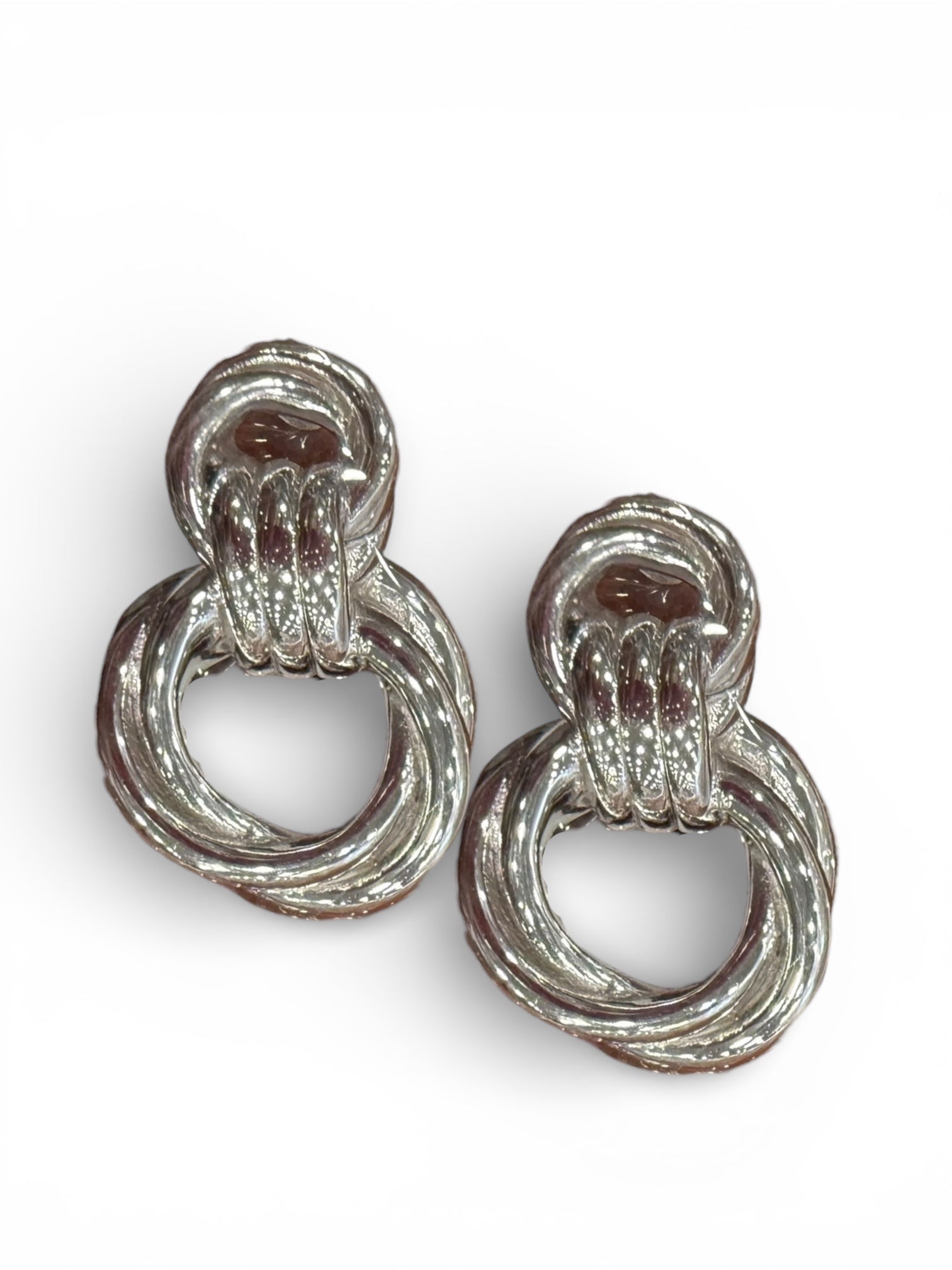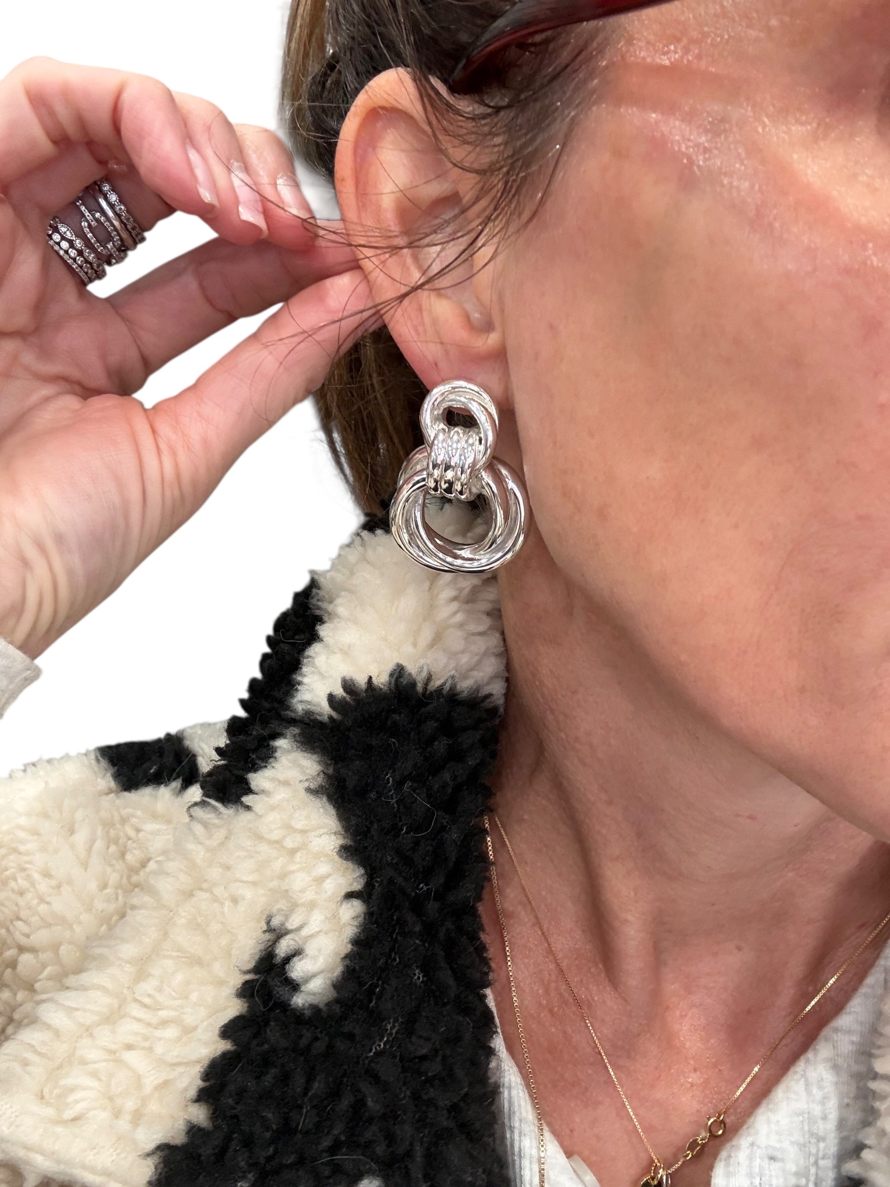 WEB Exclusive! Vera are a powerful, high-impact silver statement earring featuring a chunky, sculptural knot design. Crafted in .925 sterling silver, these earrings are hollow to keep them lightweight while delivering bold presence. Finished with a polished shine and stamped .925 for authenticity. 1.25" length
