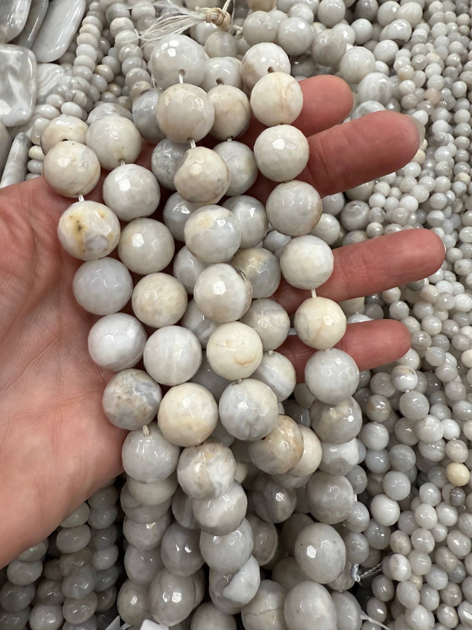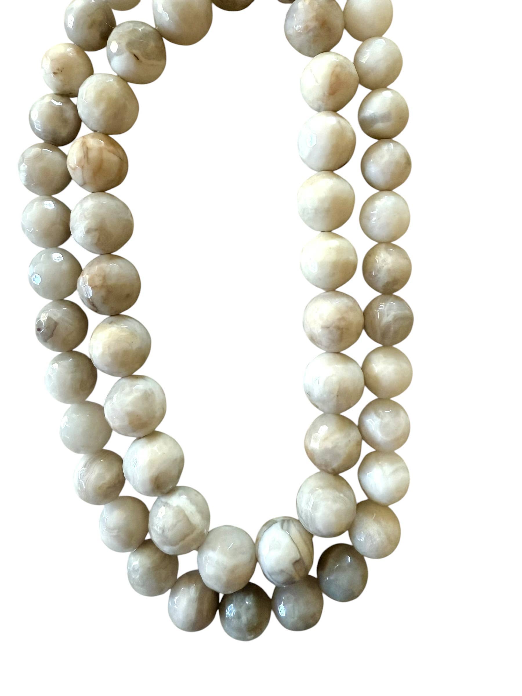 Choose selection below from 12 or 14mm beautiful white lace agate,, this one is gorgeous and looks like a rich creamy (with hints of grey) cashmere sweater. Beautiful stones.
